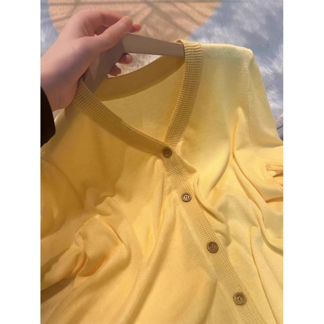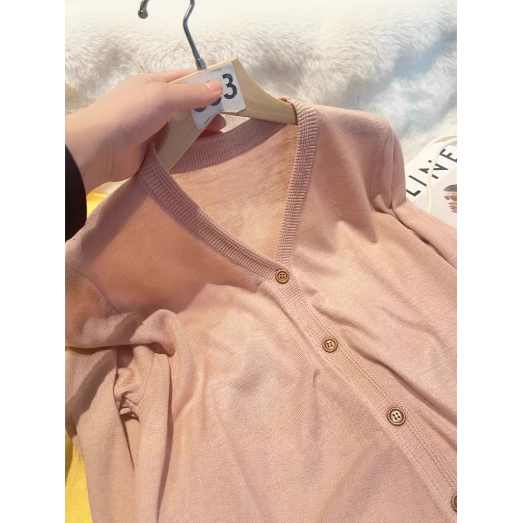 小v开衫韩系氛围感纯色针织外套女春季薄款百搭毛衣内搭短款上衣