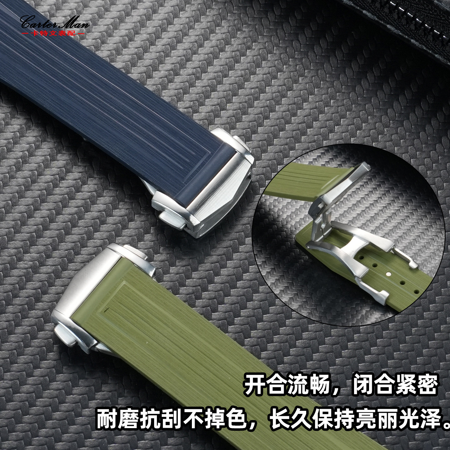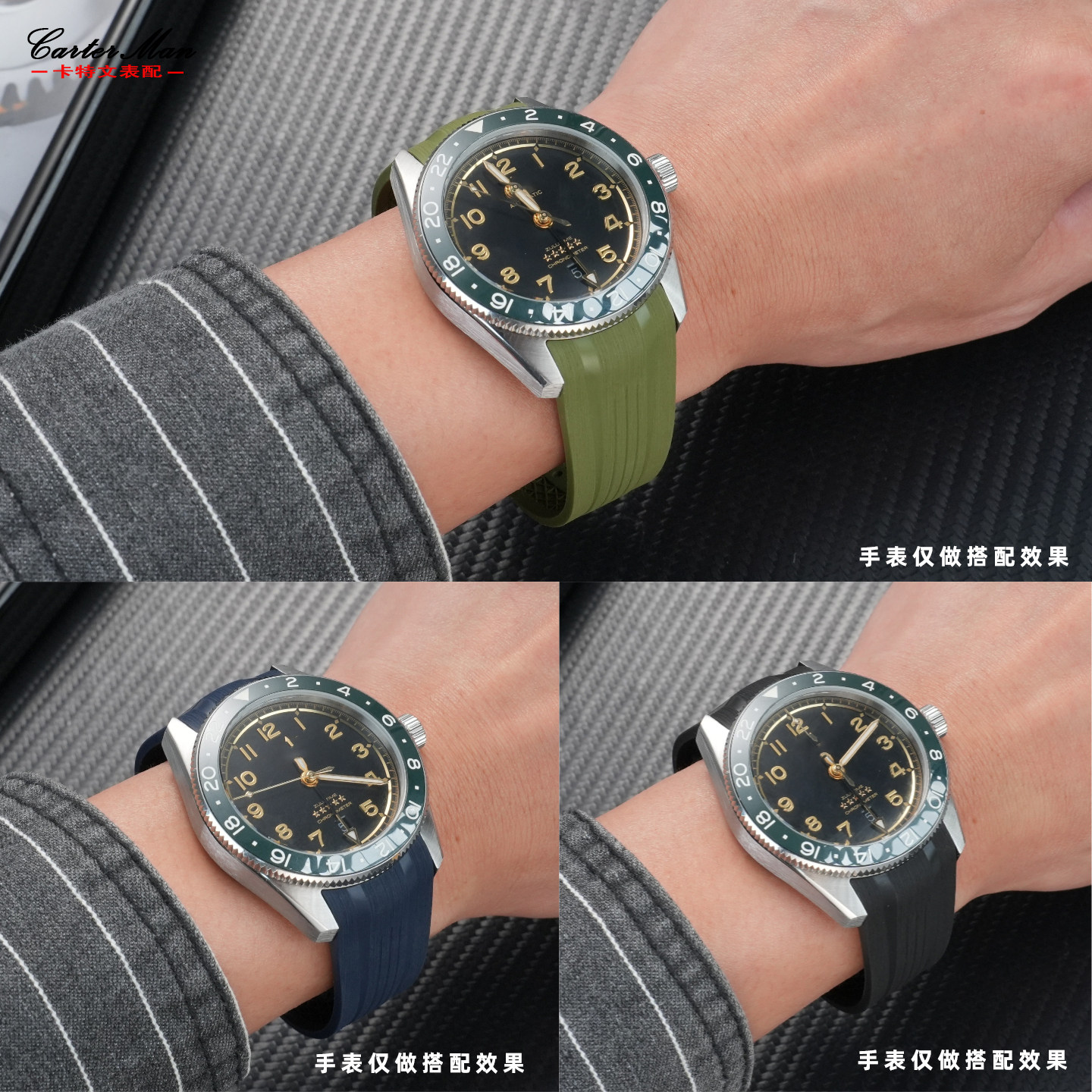 卡特文适用浪琴康卡斯GMT男41/42mm表盘L3.790/L3.890氟橡胶表带