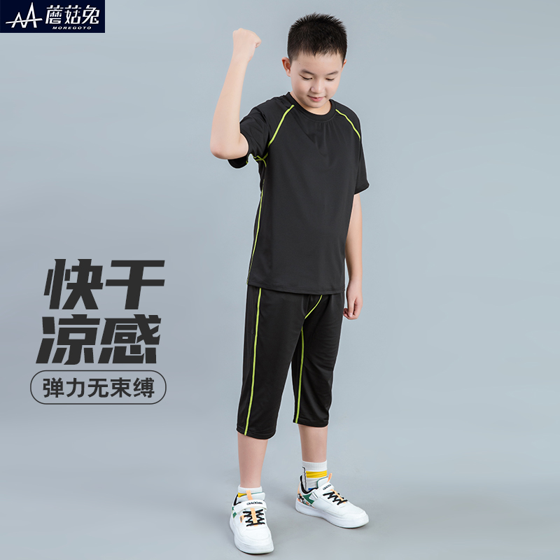 胖男童运动套装夏薄款青少年加肥加大短袖七分裤男孩休闲两件套