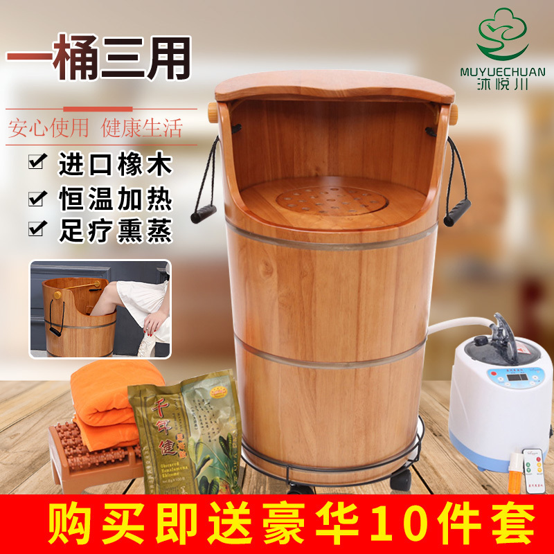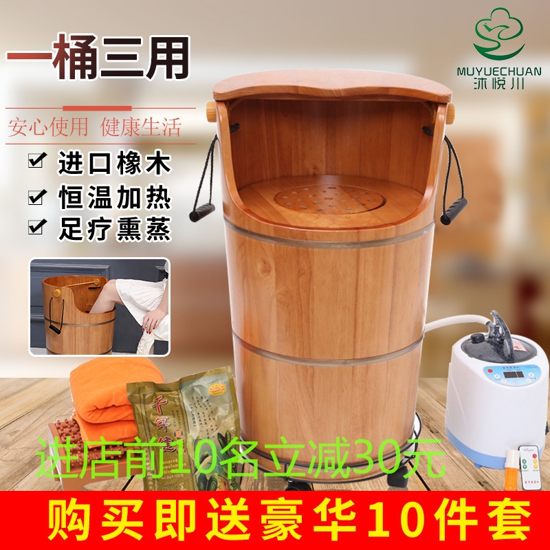 橡木熏蒸桶家用泡脚桶足浴桶蒸脚桶足浴盆泡脚盆足疗蒸汽泡脚木桶