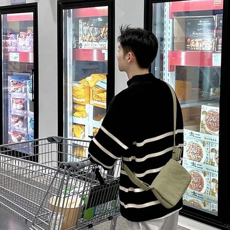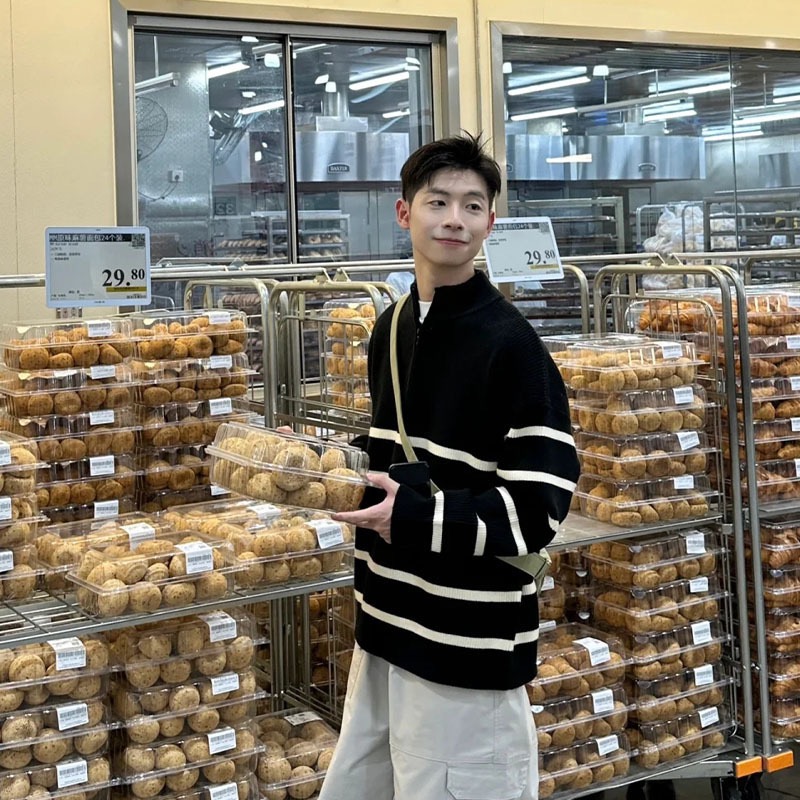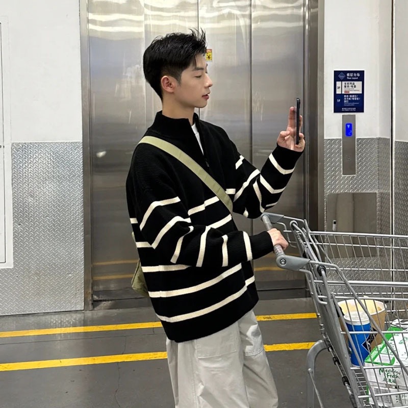 男士毛衣秋冬季2025新款横条纹立领半拉链潮流简约大码针织衫