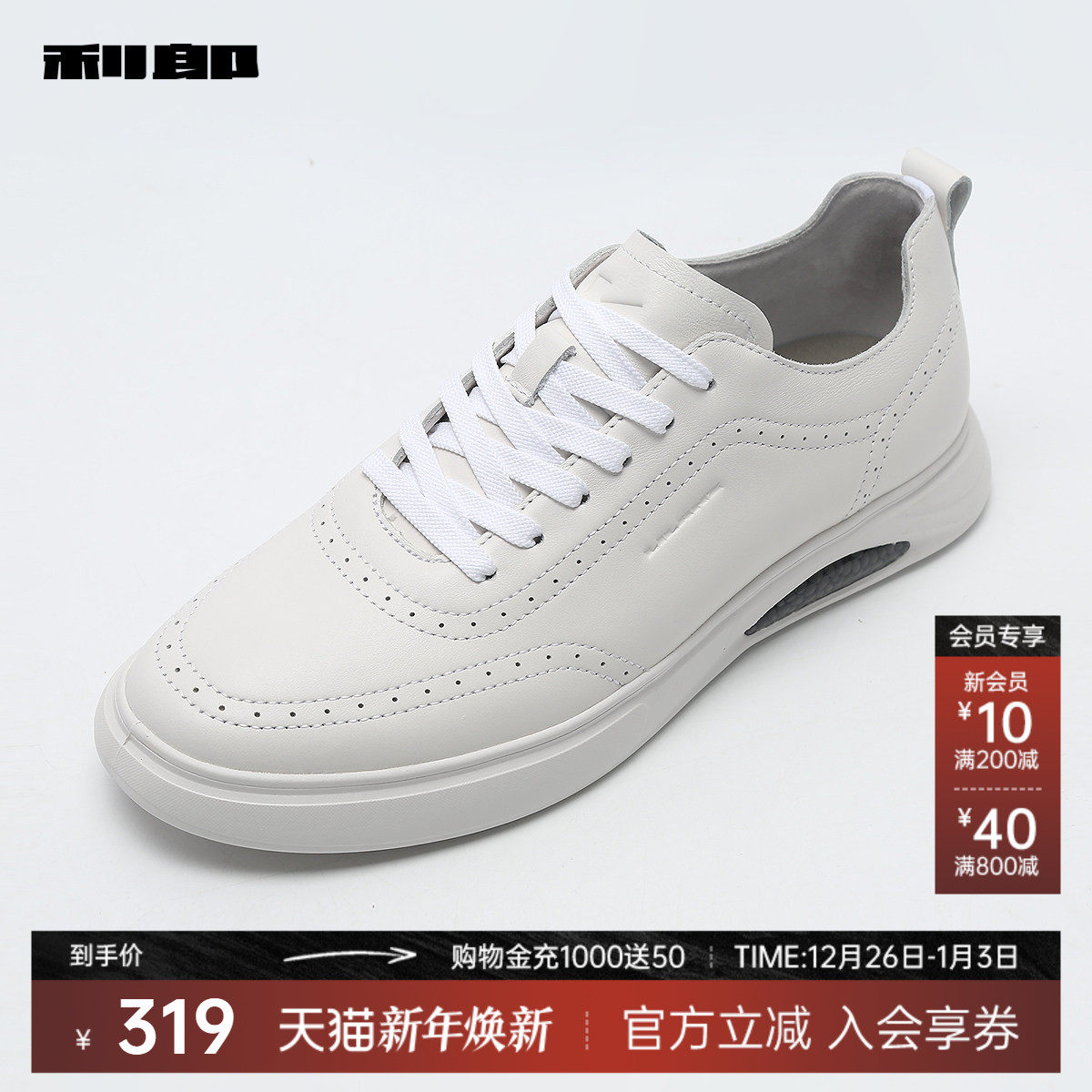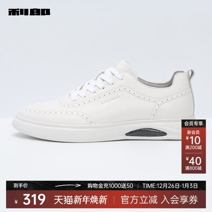 利郎官方 休闲板鞋牛皮革2025夏新款防滑舒适透气白色户外鞋子男