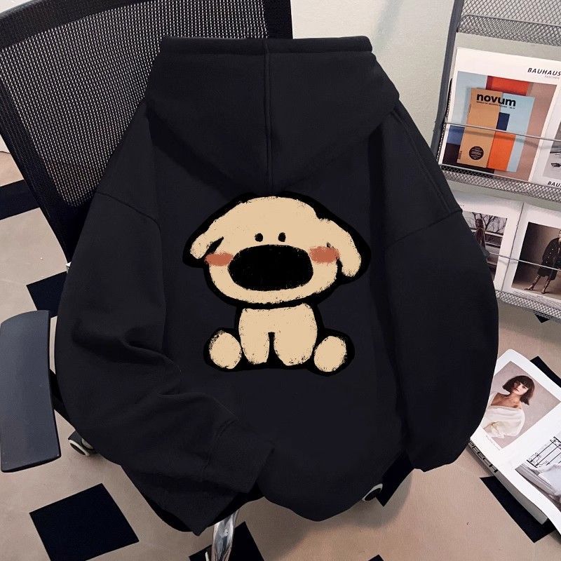 银狐绒秋冬季可爱小狗印花连帽卫衣男女宽松百搭时尚慵懒外套ins