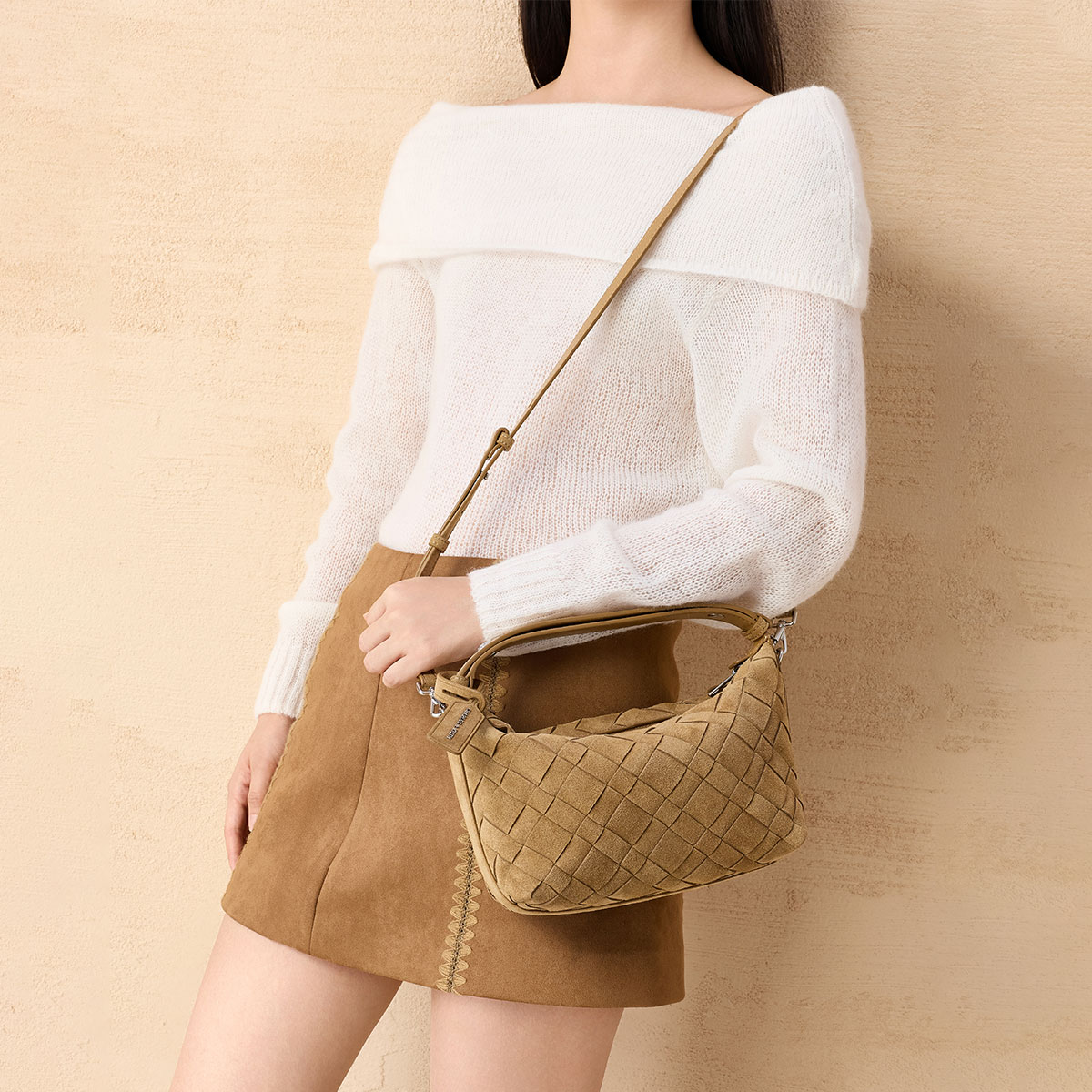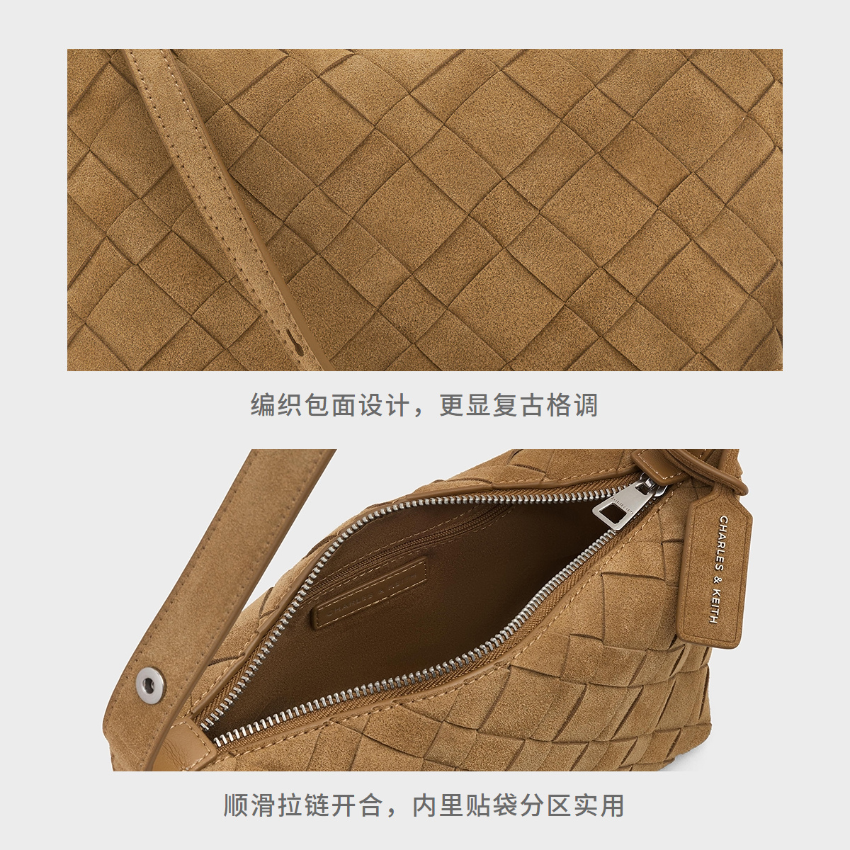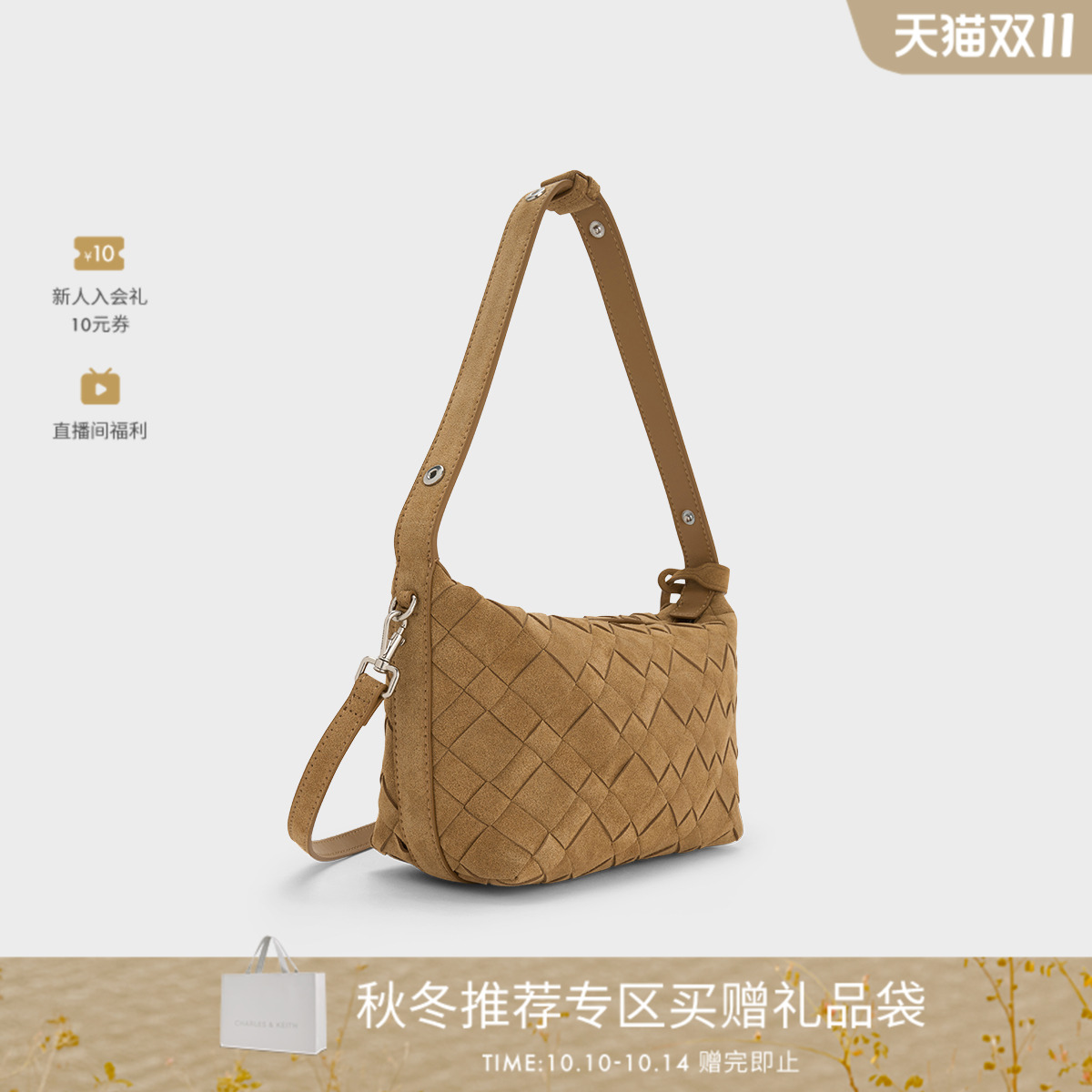 CHARLES&KEITH25秋新款CK2-20151510-1仿麂皮编织饭盒包腋下包女