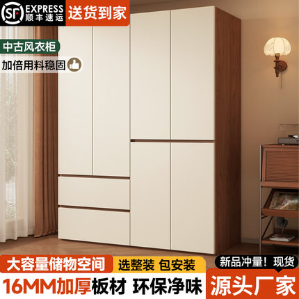中古风衣柜家用卧室现代简易衣柜出租房新款小户型省空间挂衣整体