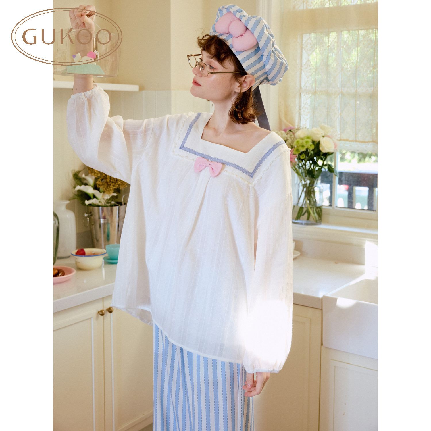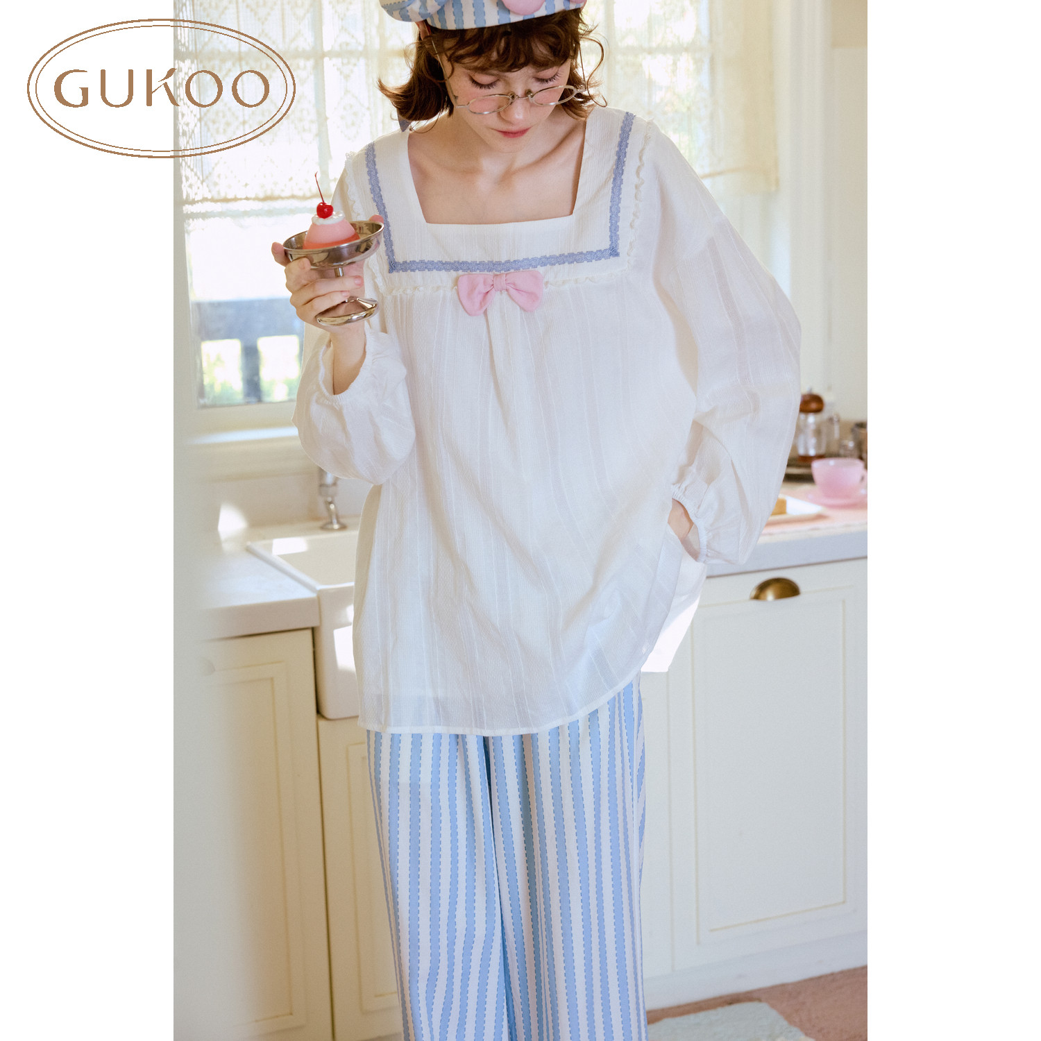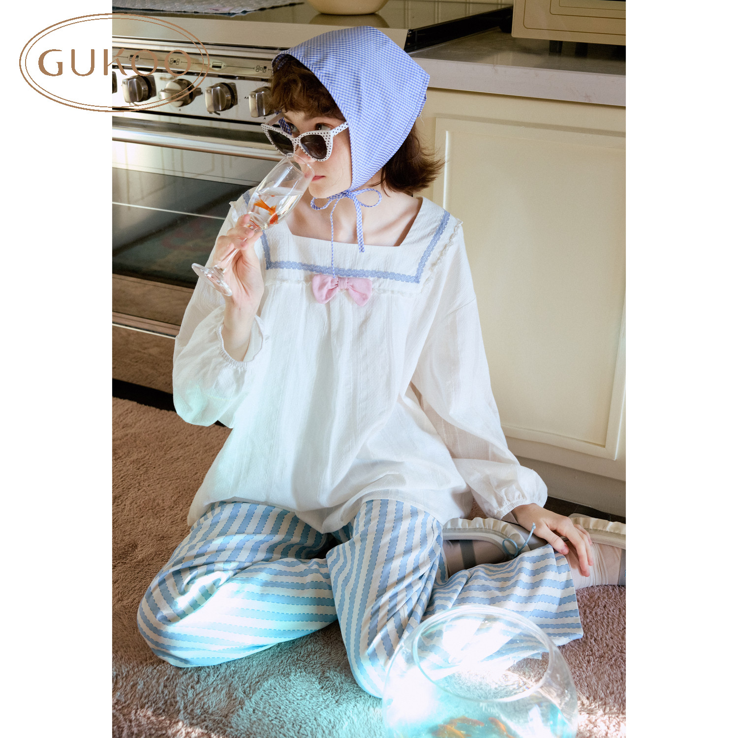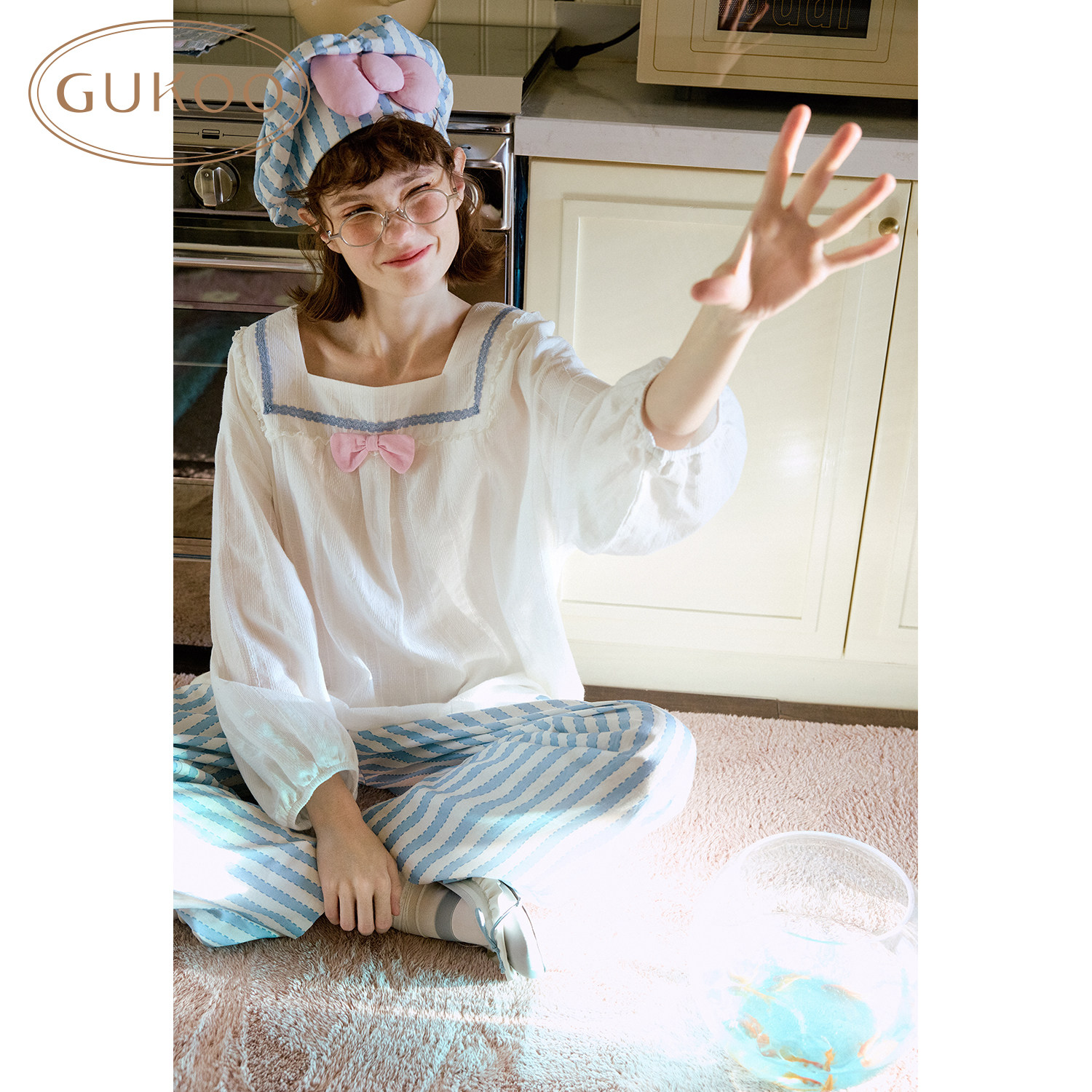 Gukoo/果壳睡衣女春夏宽松简约新款可外穿女士家居服套装A