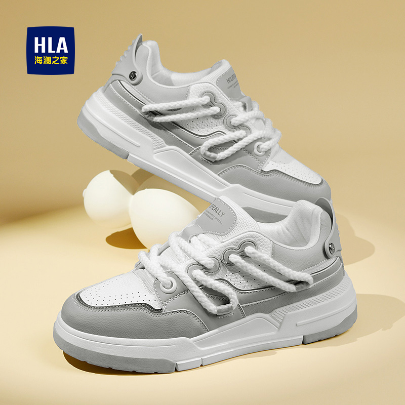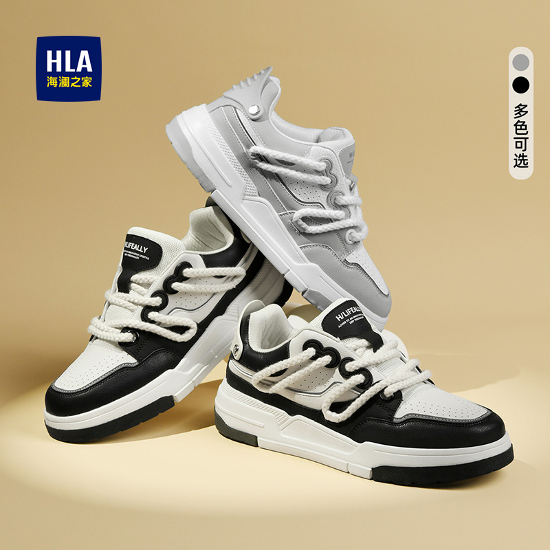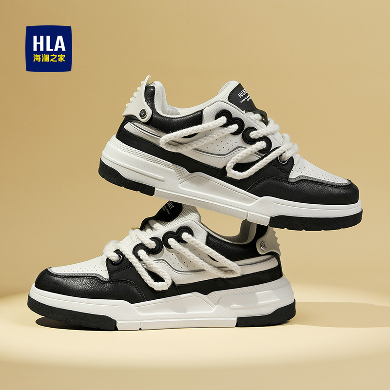 HLA/海澜之家2025新款潮流板鞋男冲孔厚底面包鞋百搭熊猫鞋男休闲