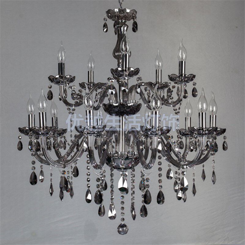 烟灰色水晶吊灯烟灰色蜡烛灯高档奢华客厅灯卧室餐厅灯具灯饰