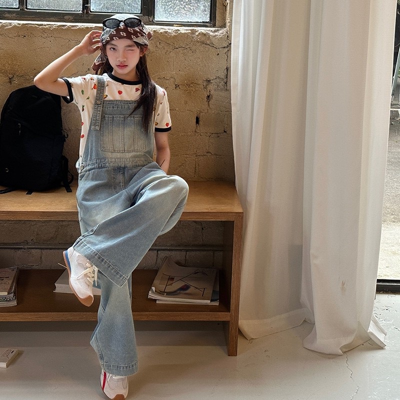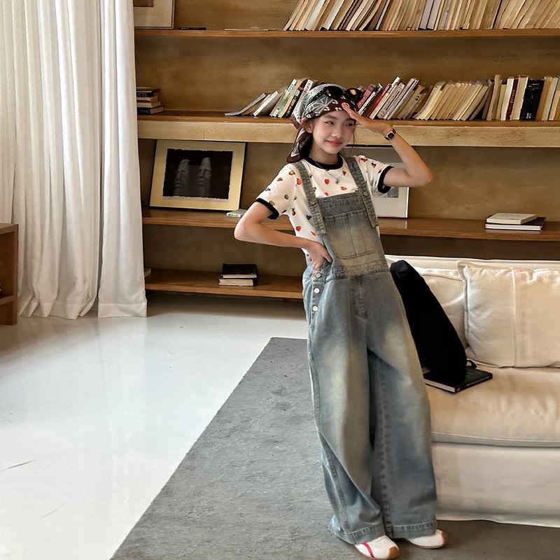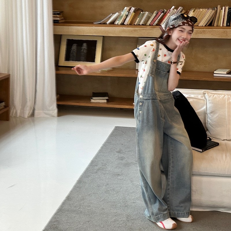 女童牛仔背带裤宽松秋季