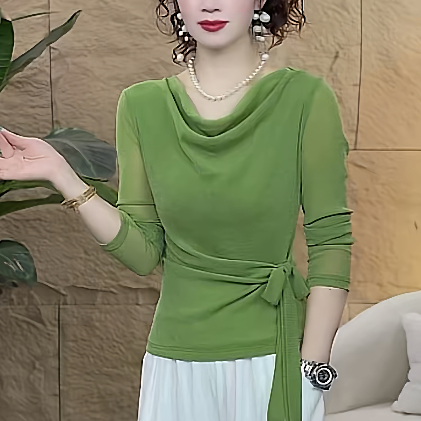 妈妈装秋季网纱堆堆领系带长袖小衫时尚女洋气T恤百搭打底衫上衣