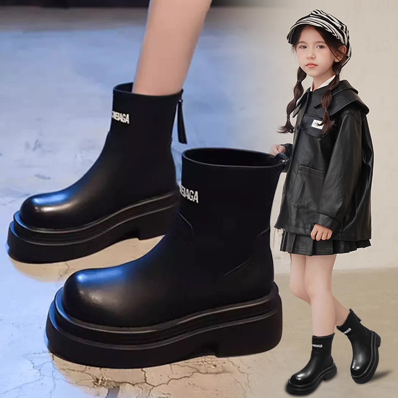 女童靴子2024秋冬新款中大童洋气公主马丁靴儿童加绒皮靴烟筒短靴