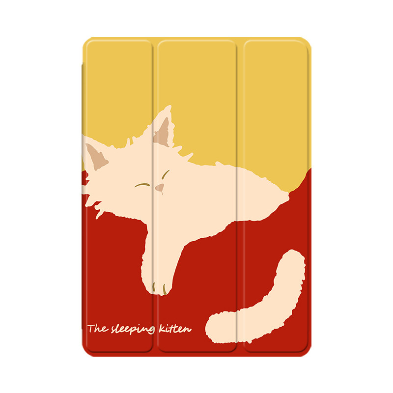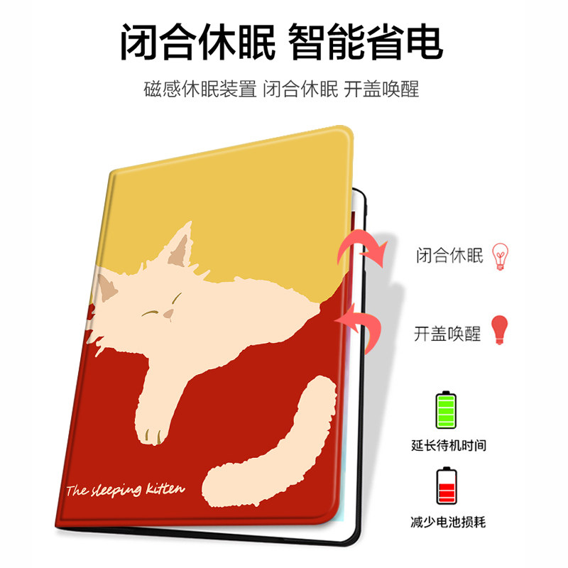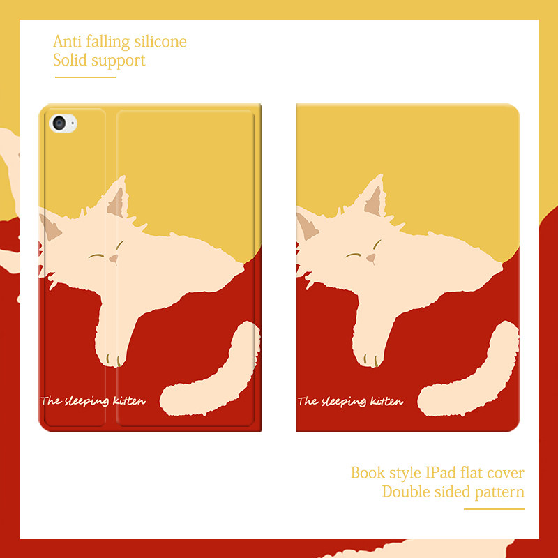 慵懒可爱小猫2021/20/19新款ipad适用air4/3/2气囊保护套10.2/9.7寸平板2018笔槽pro11三折mini4/5苹果123壳6
