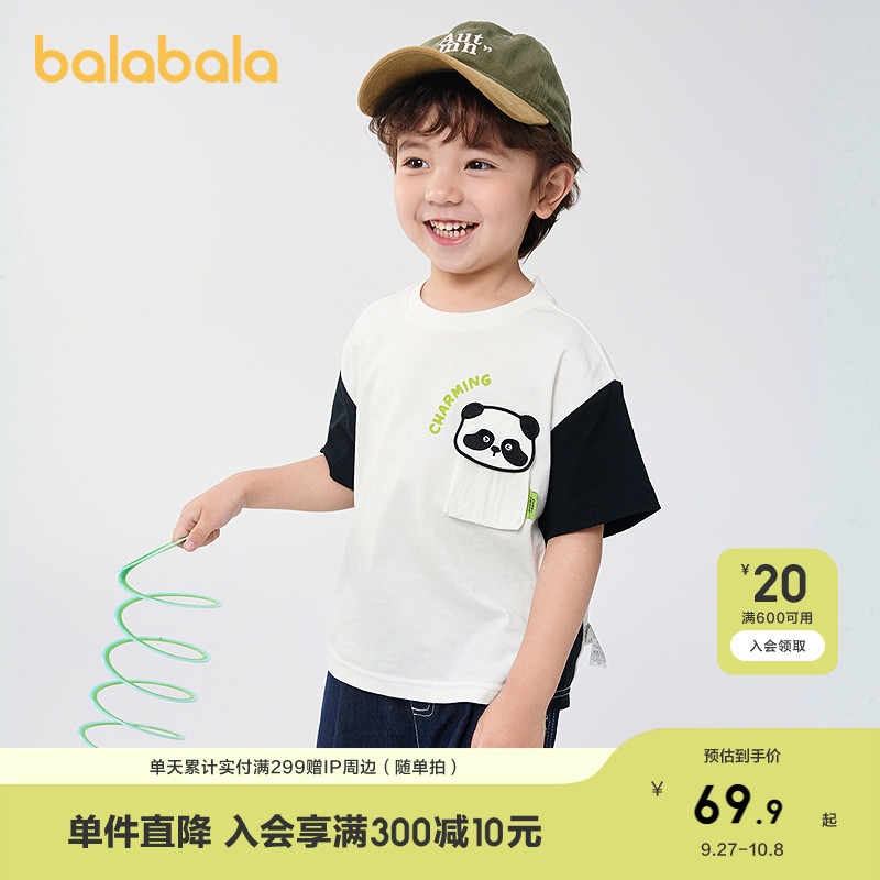 【商场同款】巴拉巴拉童装儿童t恤男童短袖上衣2025新款夏装拼色