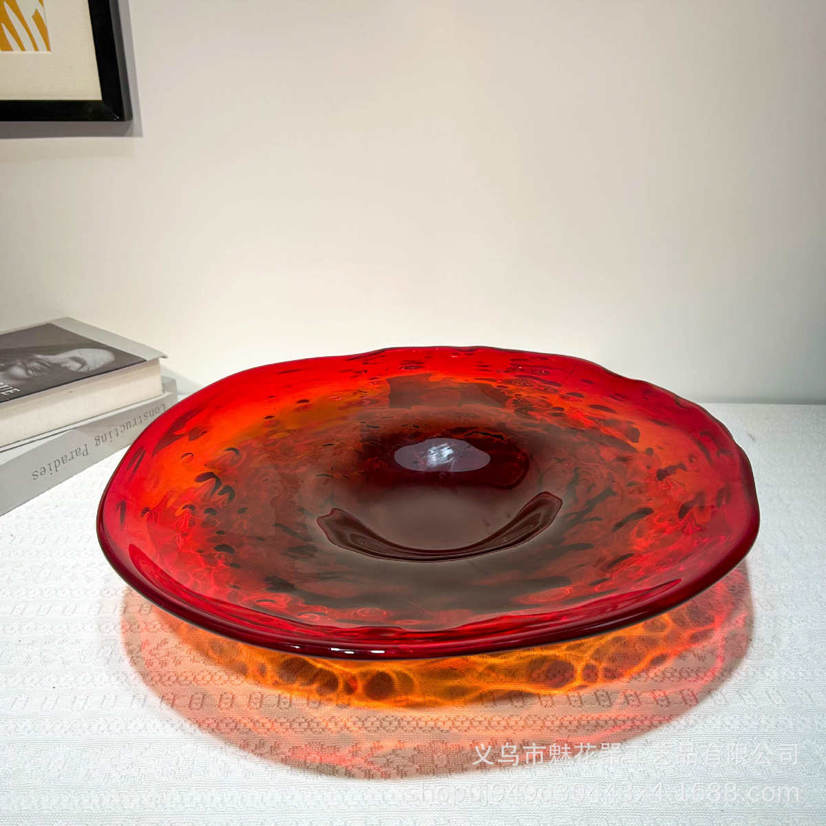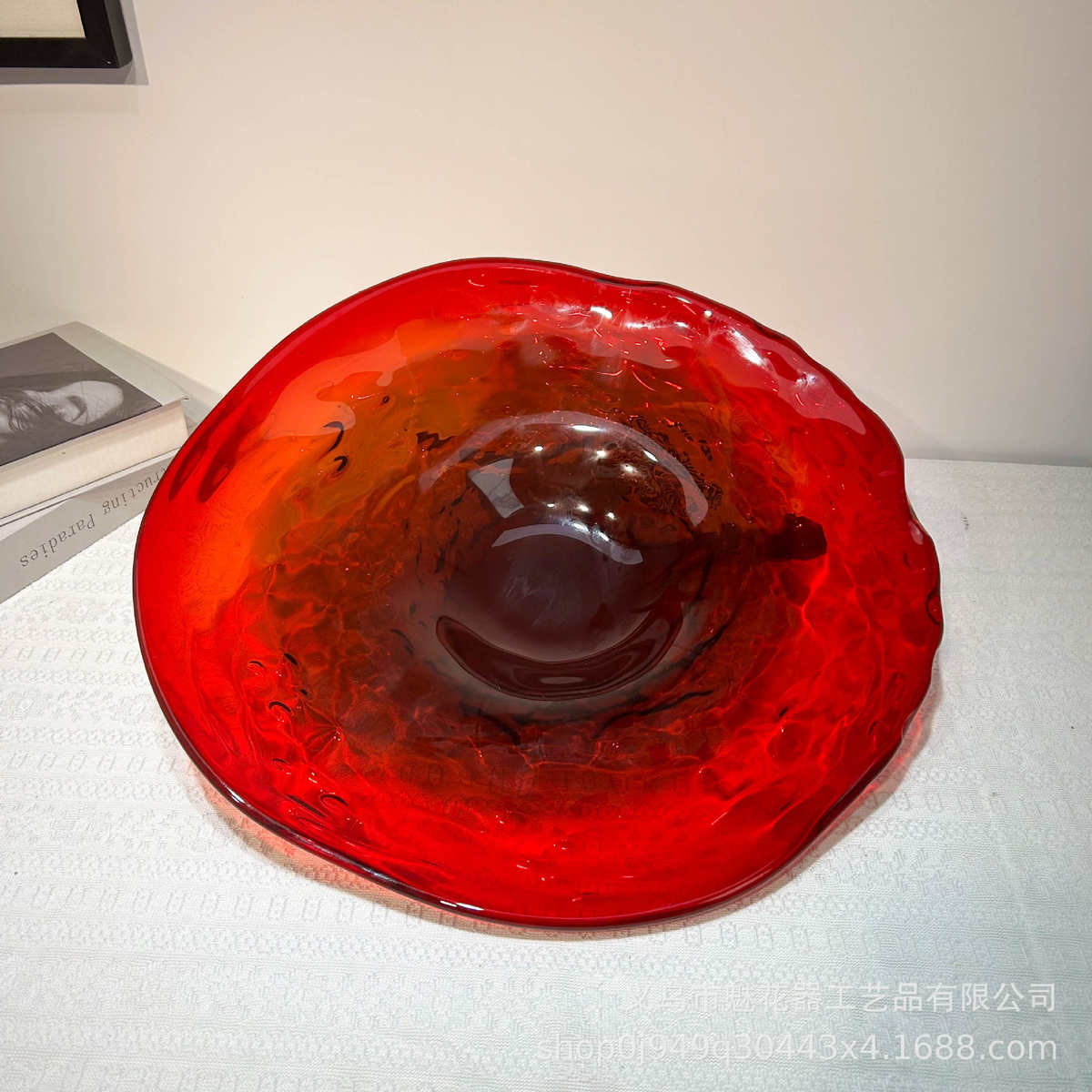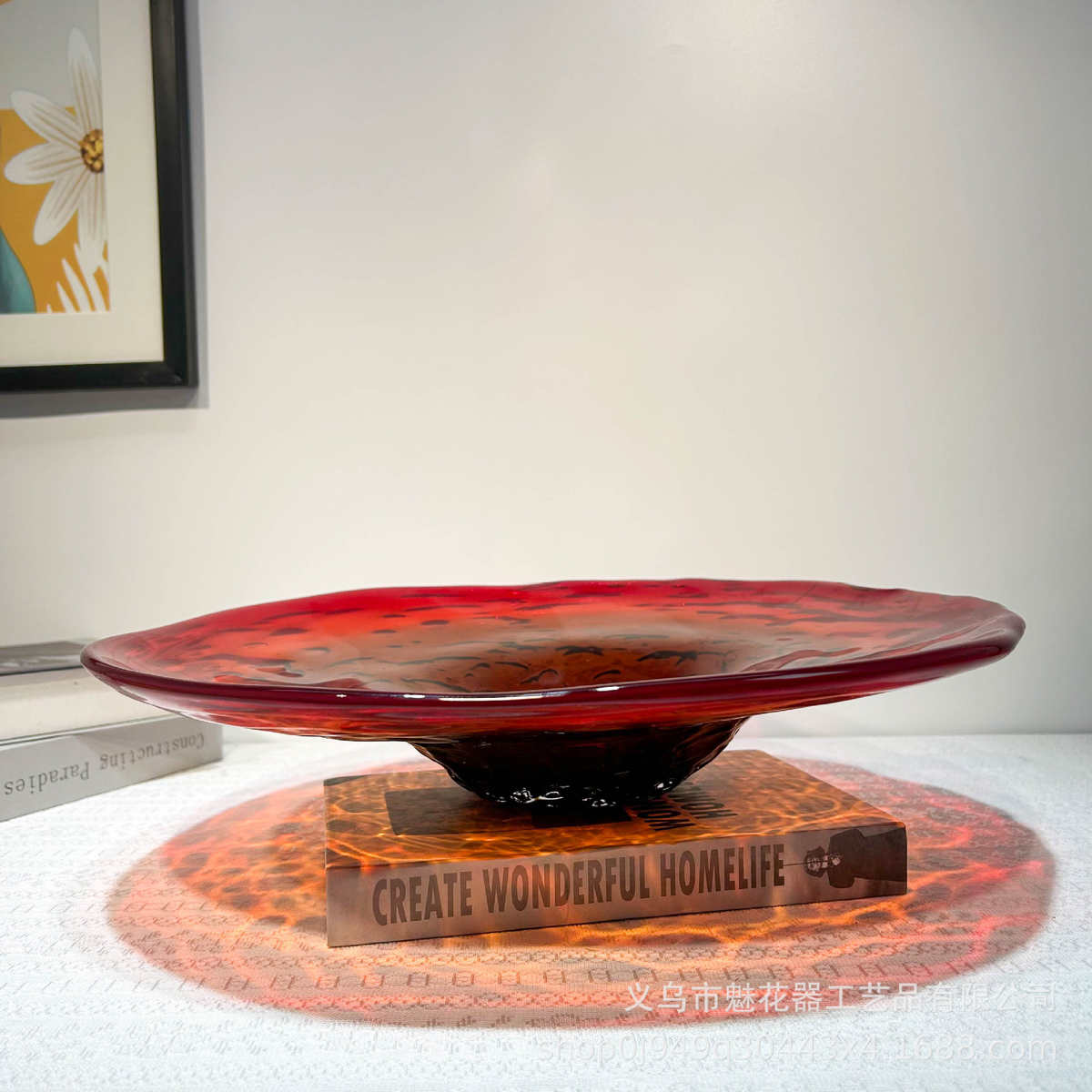 乔迁新居首选手工火红琉璃水果盘客厅茶几水果盘样板间高级感摆件