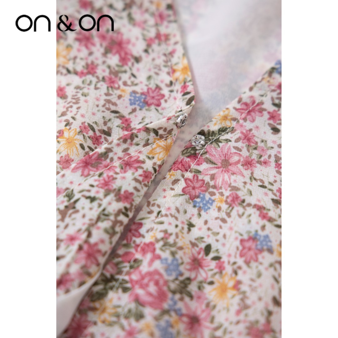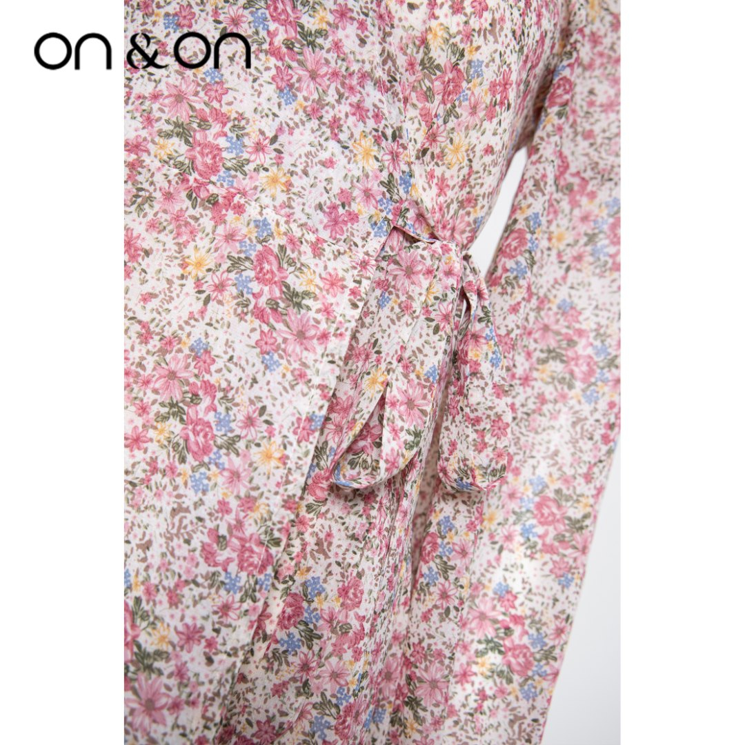 ON&ON/安乃安25秋季新款V领韩版碎花系带收腰显A摆一片式连衣裙