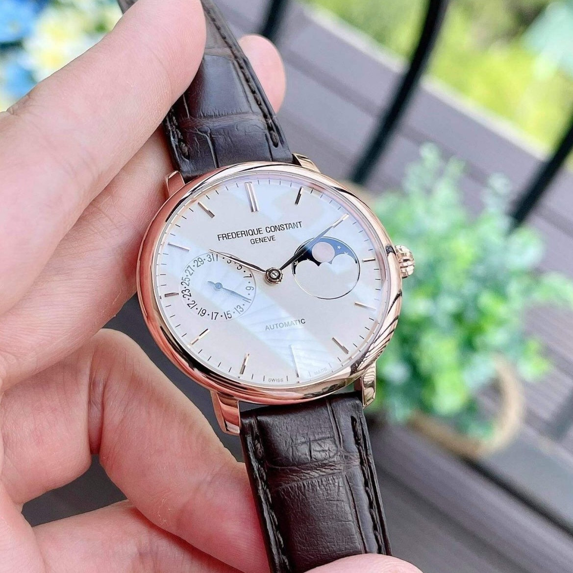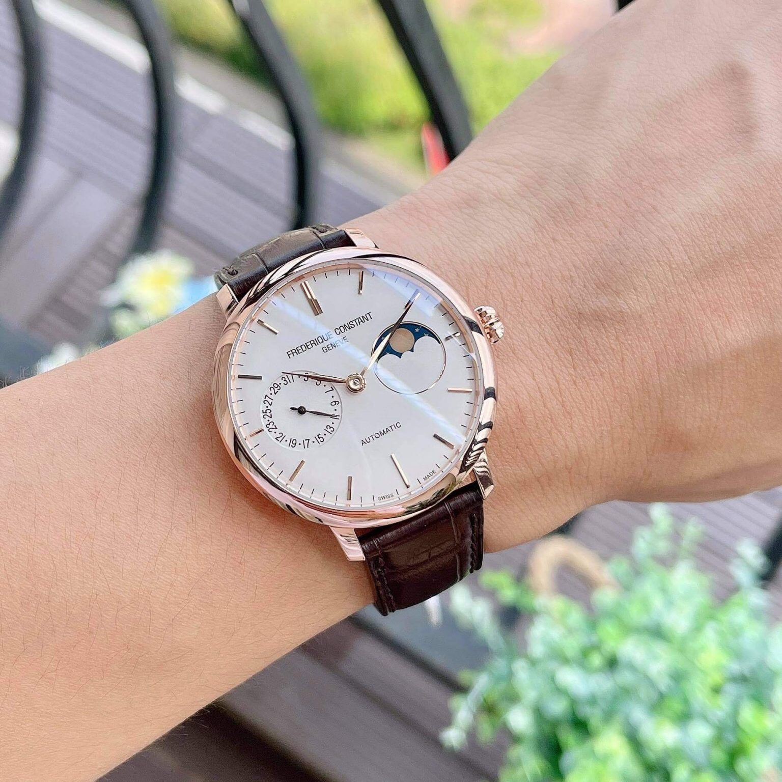 康斯登 自家机芯经典玫瑰金月相瑞士自动机械商务男手表 702V3S4
