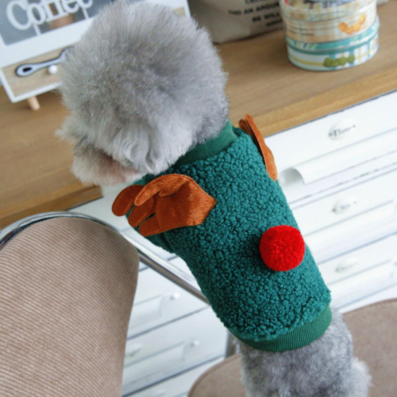 毛绒两脚衣狗狗猫咪圣诞撞色