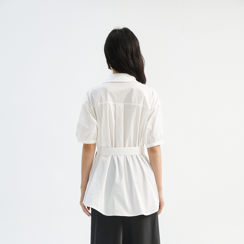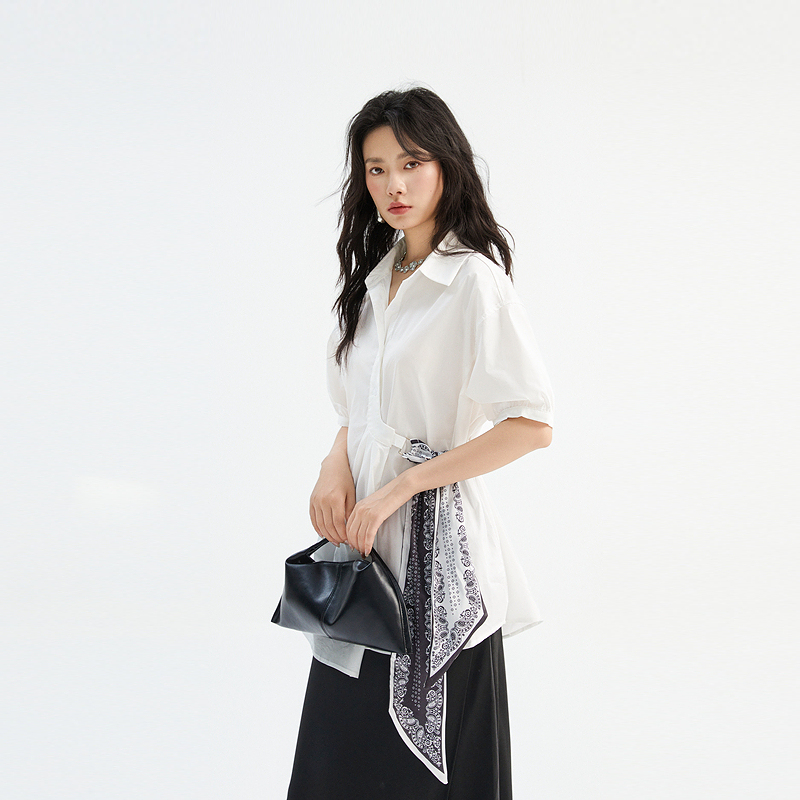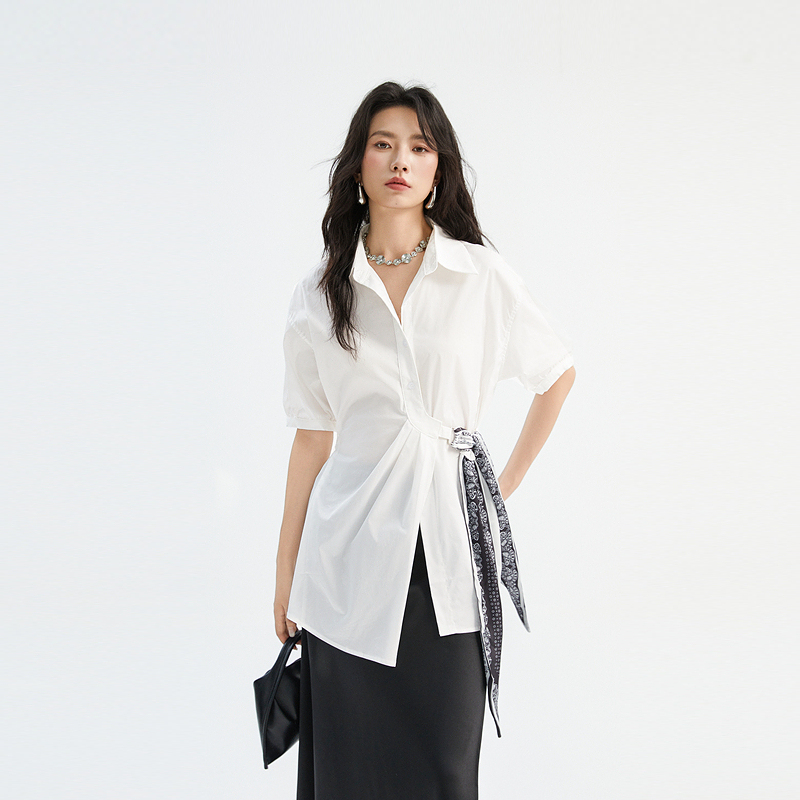 记忆的起点白色短袖衬衫2025夏季新款气质女士翻领上衣69GX16950