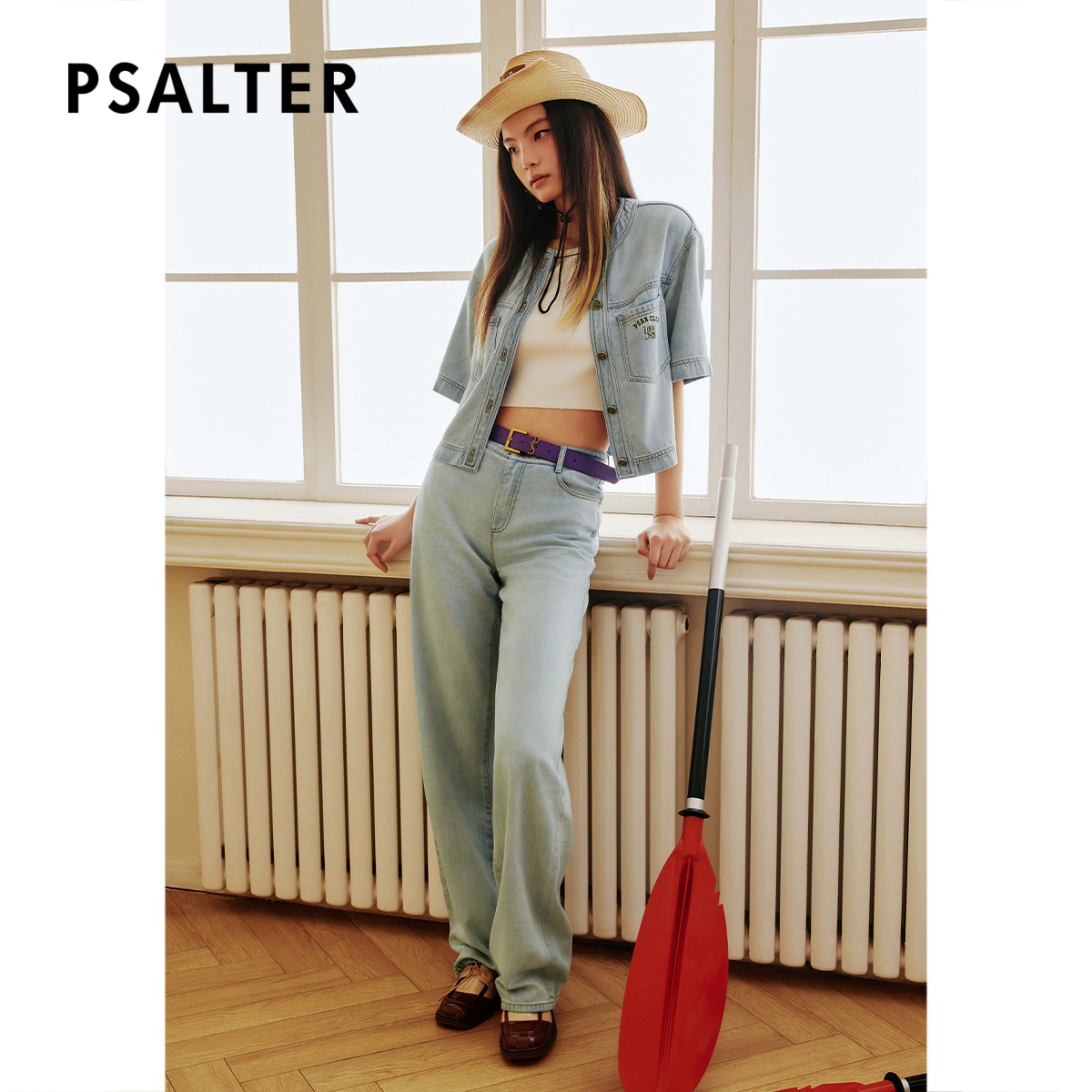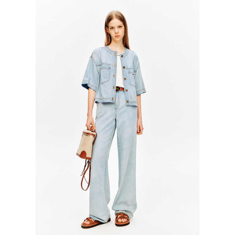 PSALTER诗篇圆领落肩学院风莱赛尔浅色牛仔外套夏款