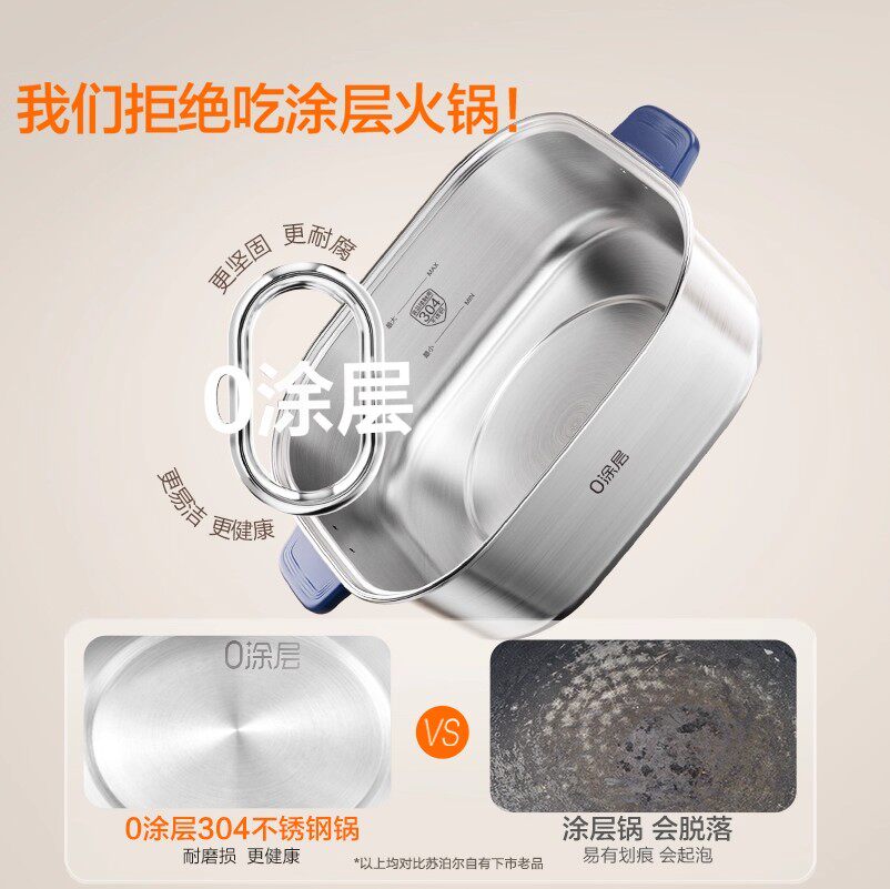 苏泊尔0涂层不锈钢分体式电火锅