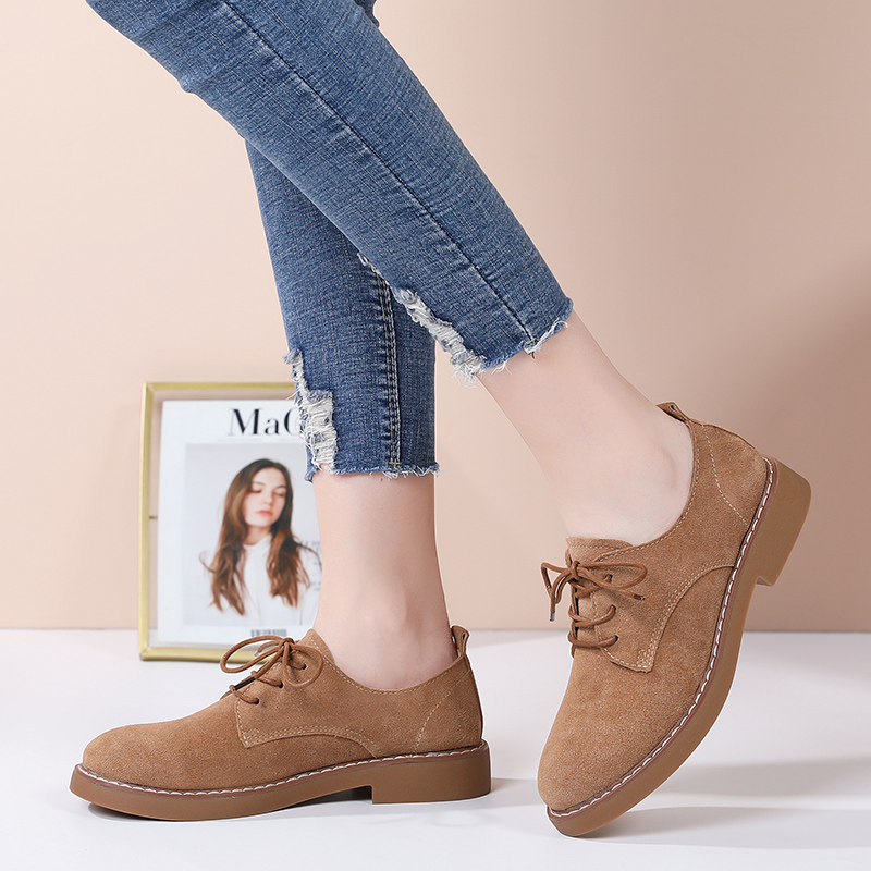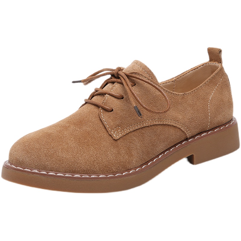 真皮单鞋2024春秋款女鞋英伦风小皮鞋系带休闲鞋妈妈鞋防滑工作鞋
