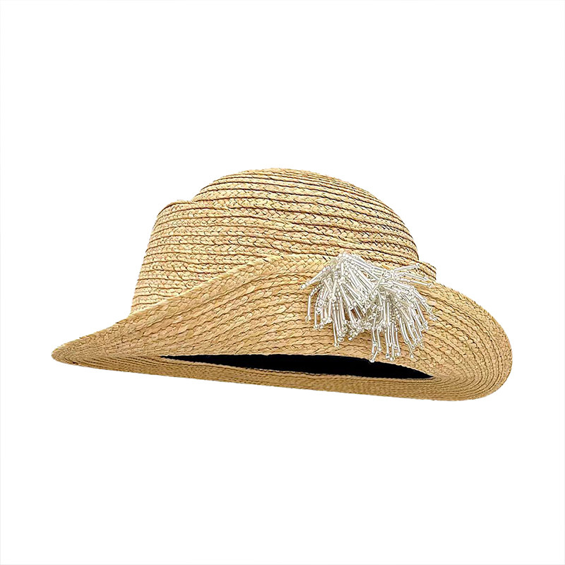 法式复古千金风烟花流苏编织草帽女春夏卷边百搭显脸小优雅遮阳帽
