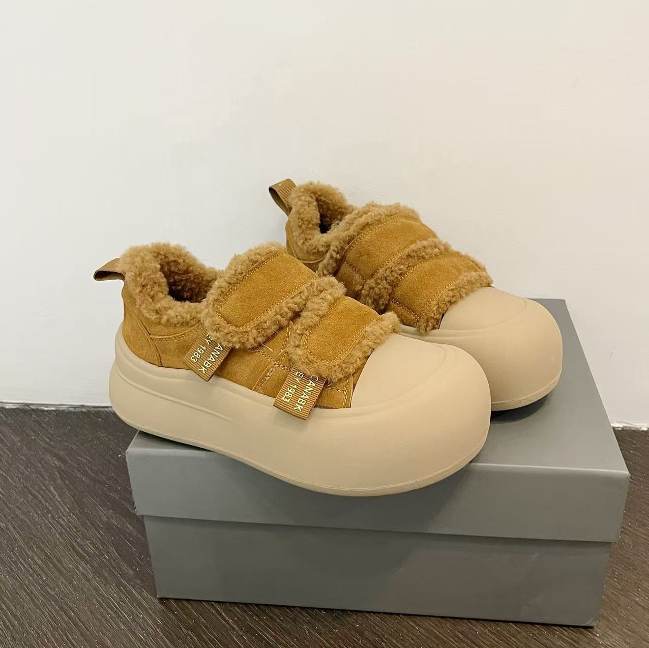 欧洲站2025冬季新款时尚加绒保暖休闲板鞋女百搭磨砂皮毛毛棉鞋