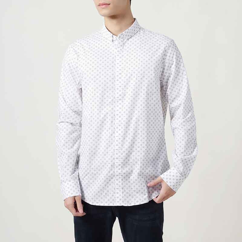 Armani阿玛尼AX 男士微弹长袖翻领暗门襟休闲衬衫银泰百货 300095