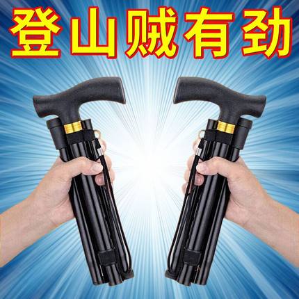 伸缩防滑手杖折叠登山杖超轻便携户外徒步拐杖铝合金弯柄老人拐棍