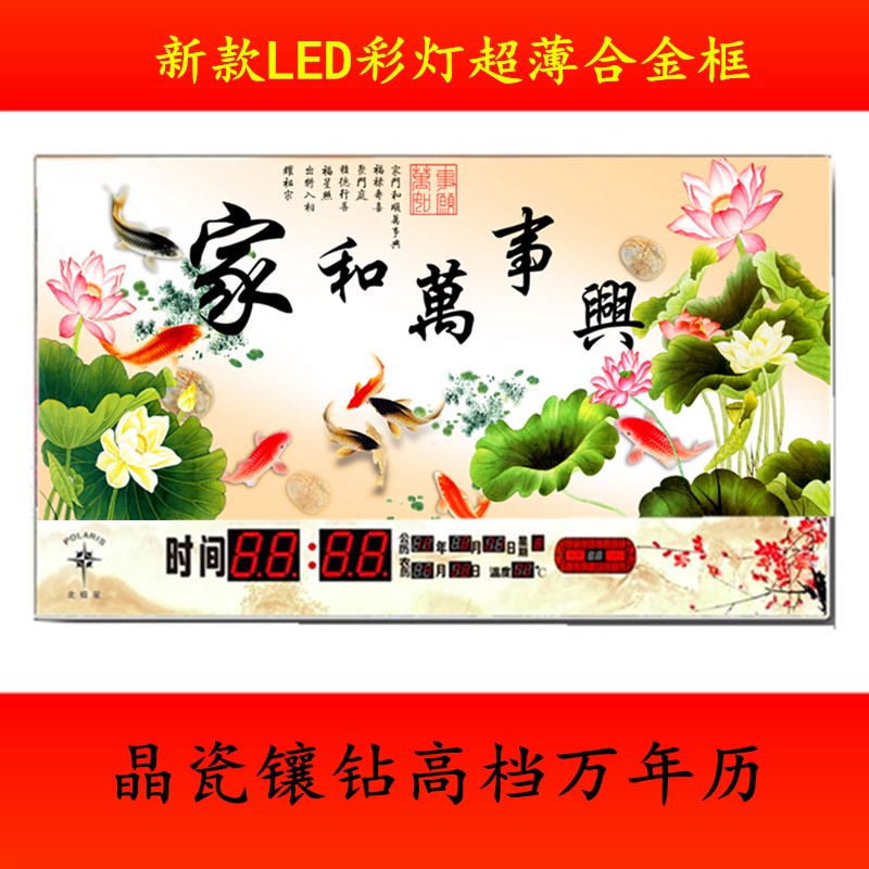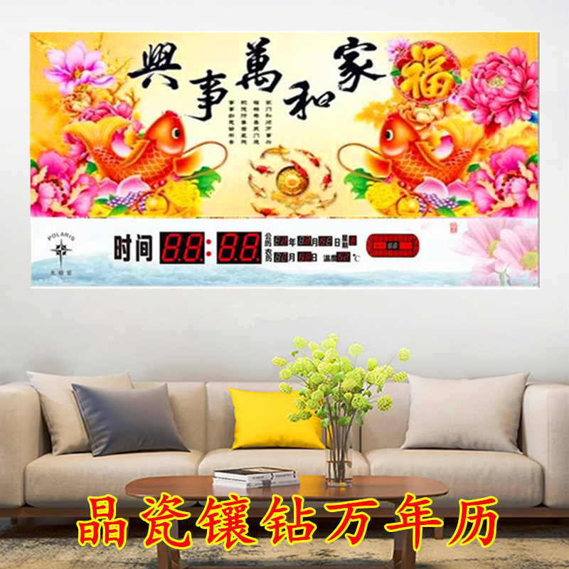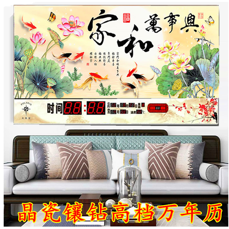 晶瓷镶钻客厅风景装饰画大挂钟家和万事兴万年历电子钟家用日历表