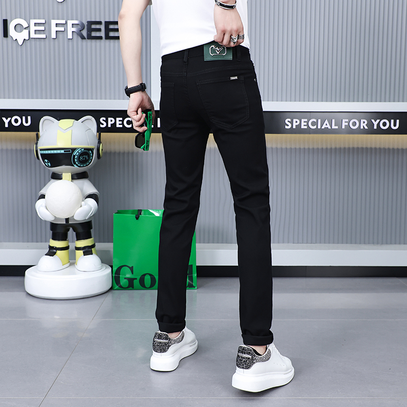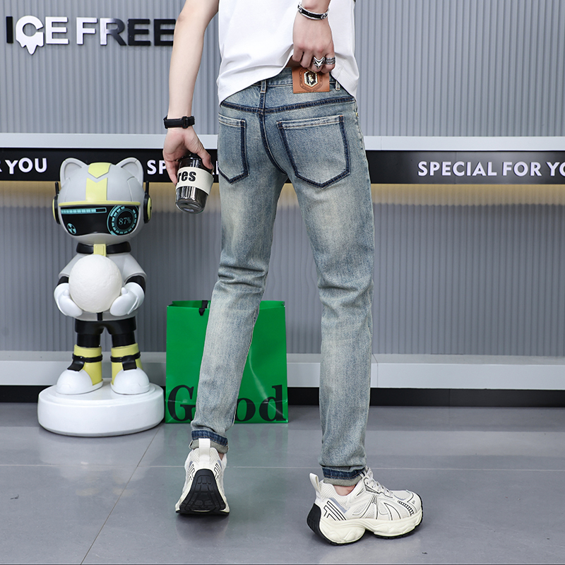 高端轻奢欧货时尚潮牌重磅刺绣印花水洗牛仔裤男款修身小直筒长裤