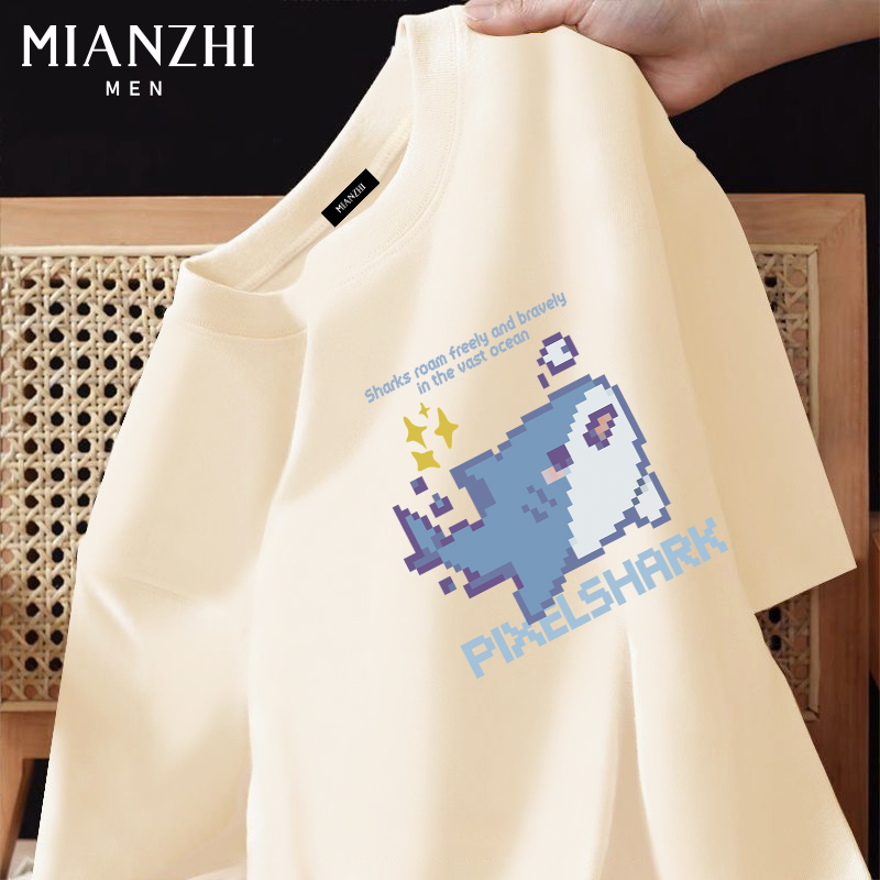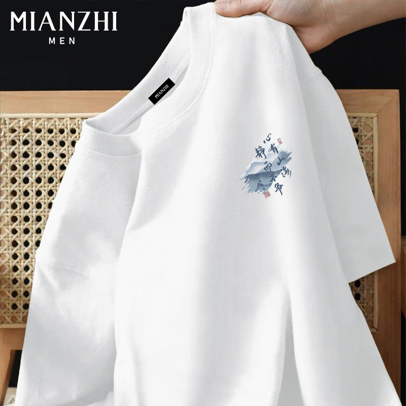 棉致静而不争淡蓝色男士短袖t恤宽松纯棉国潮大码休闲夏季上衣服