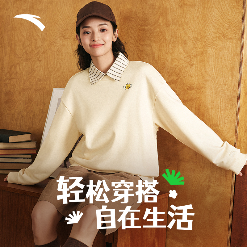 安踏×超级植物联名丨豹富套头卫衣女士秋季新款宽松百搭长袖上衣