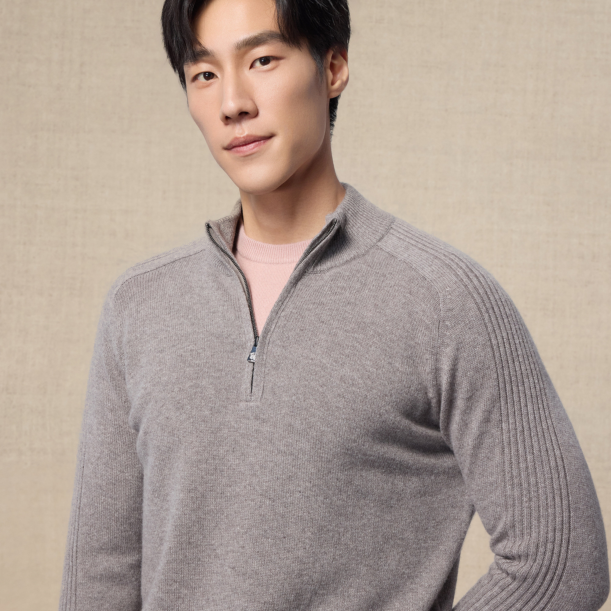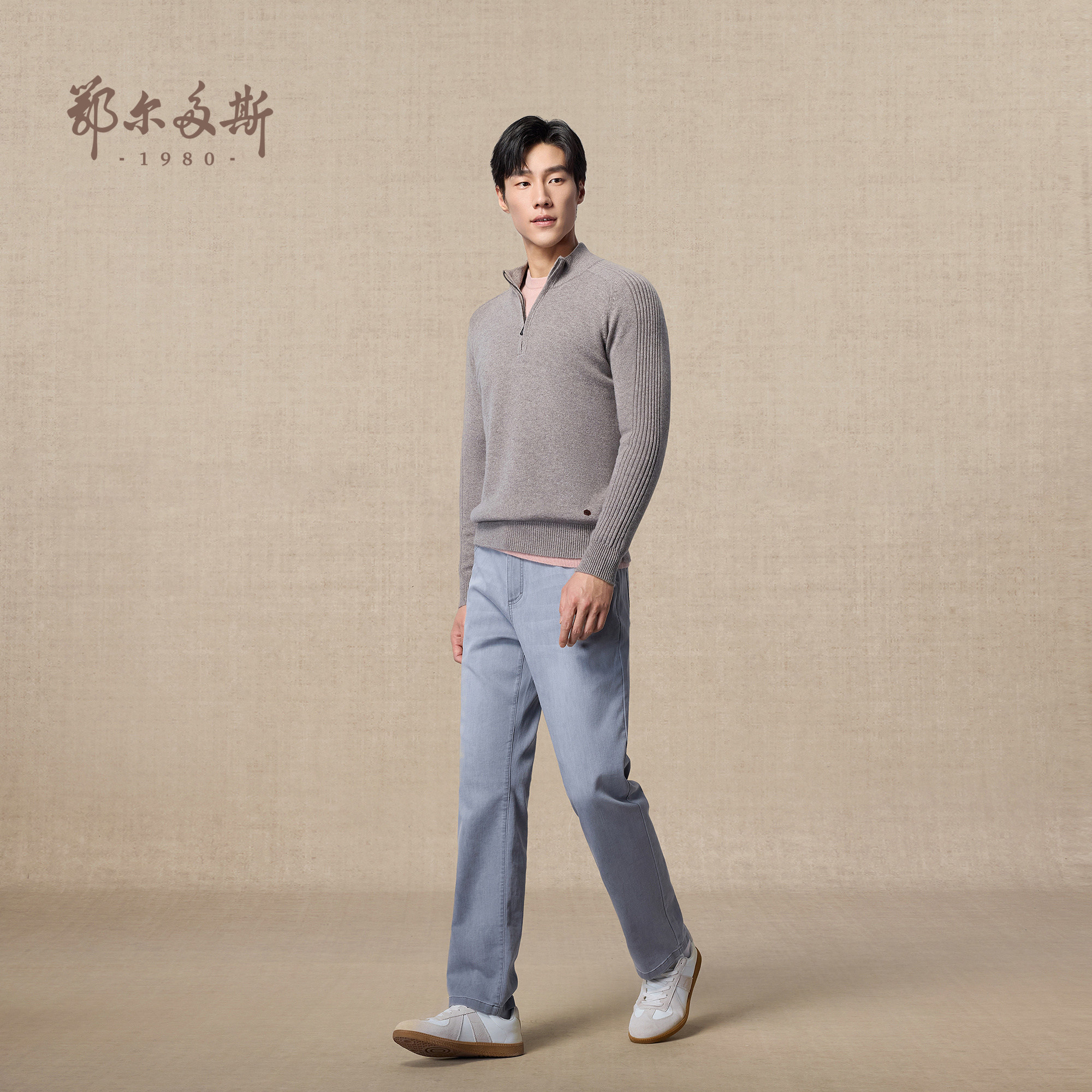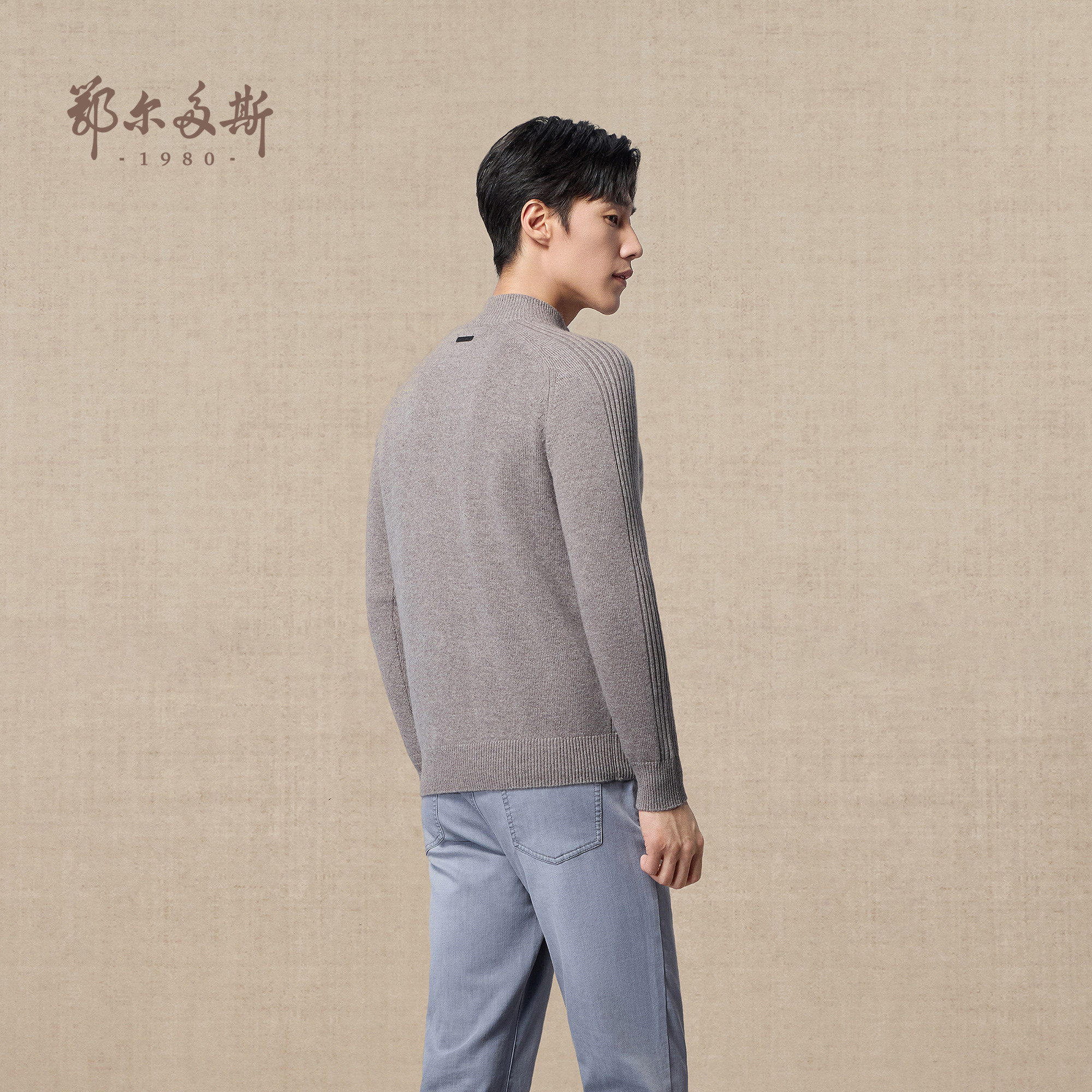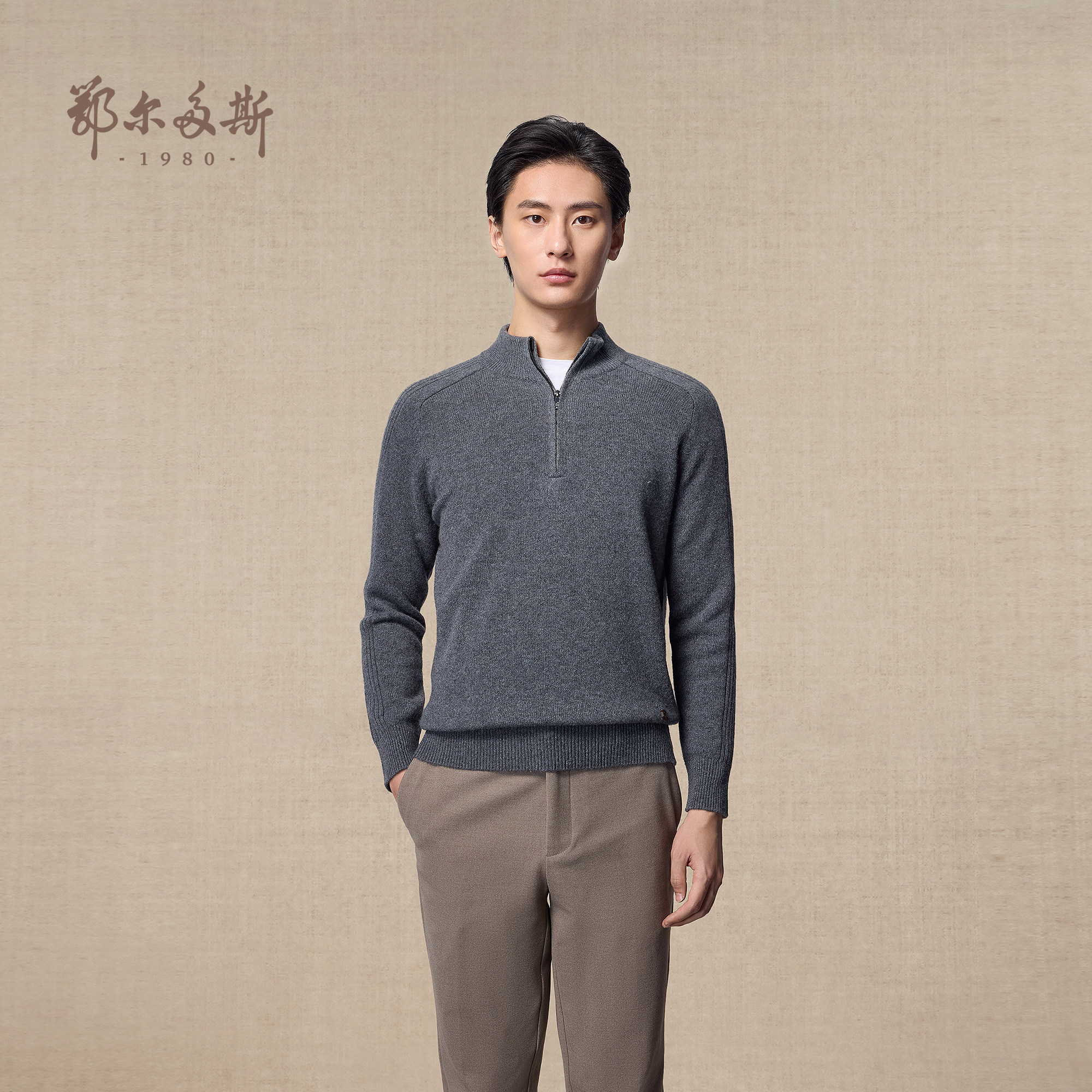 鄂尔多斯1980 男装拉链半高领羊绒衫25年秋冬新品厚款休闲针织衫