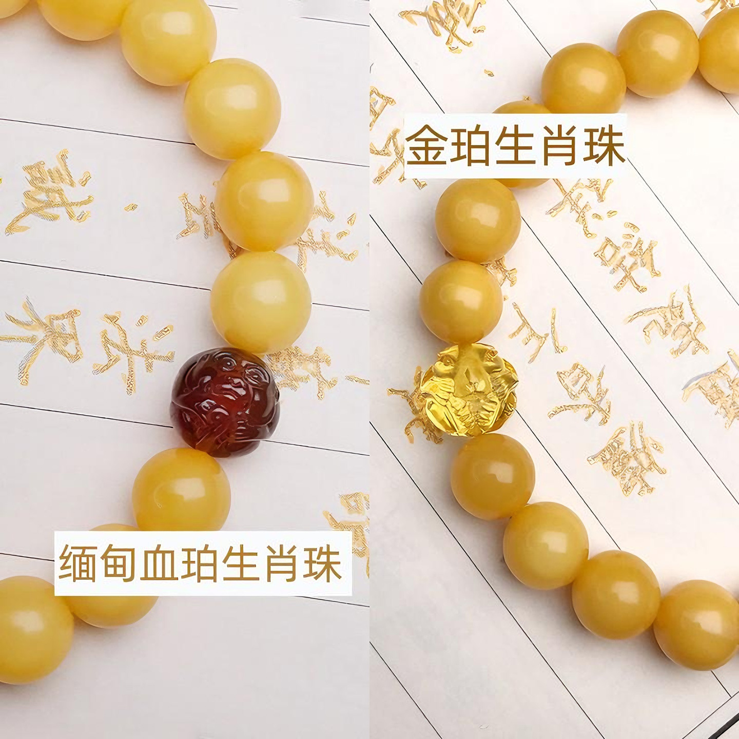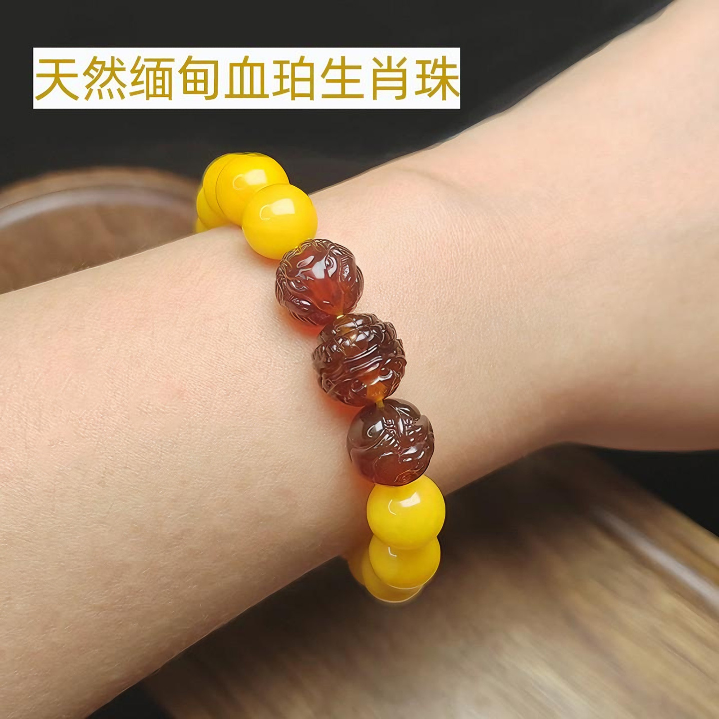 思华年天然琥珀蜜蜡缅甸棕红血珀金珀生肖珠雕刻散珠挂件手串配饰