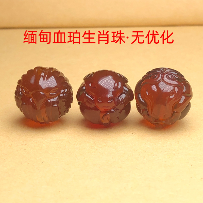 缅甸血珀无优化生肖珠散珠配珠