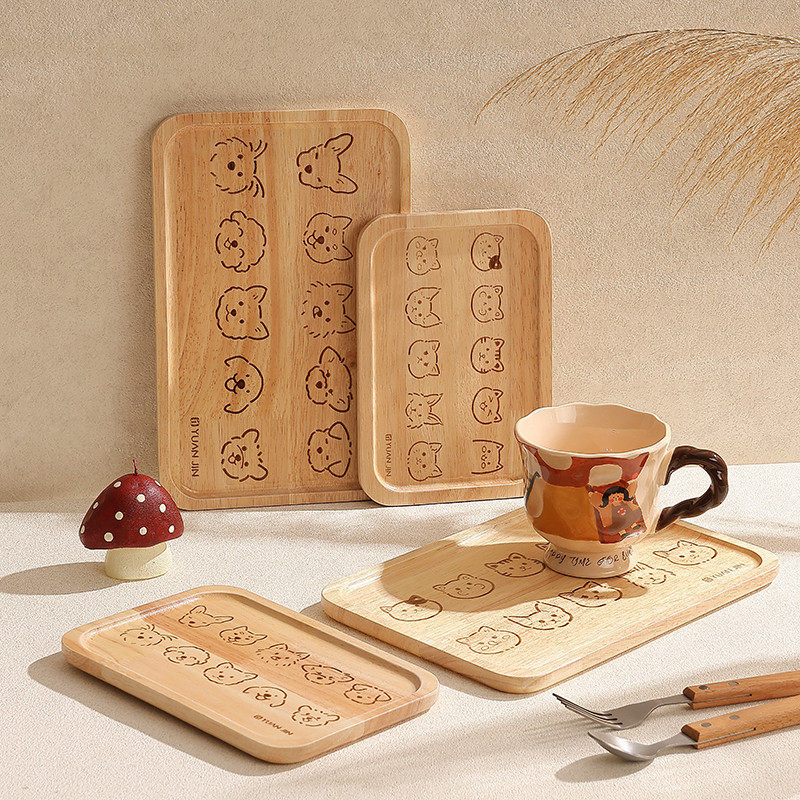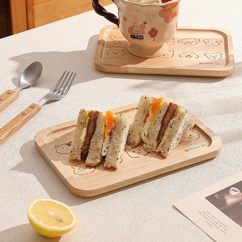 木质喝茶茶具托盘餐盘长方形单人茶盘仪式感早餐盘水果盘蛋糕盘子