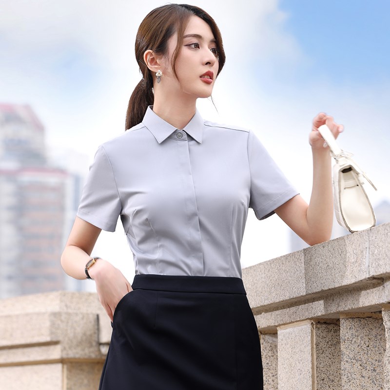 夏季新款短袖白色衬衫女职业正装气质工作服工装暗门襟防走光衬衣