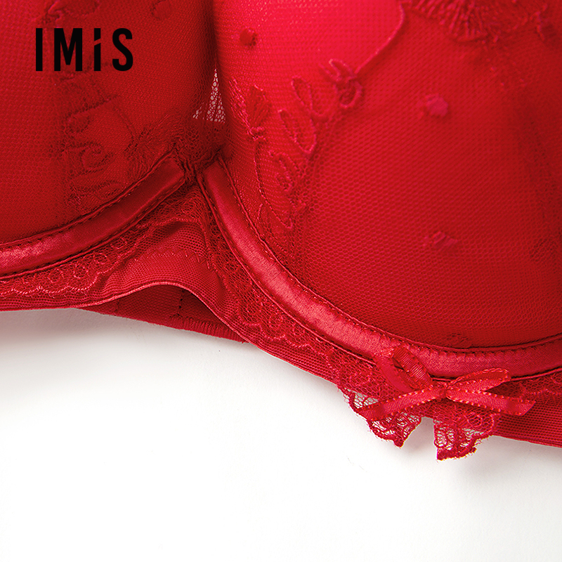 爱美丽本命年新款小胸聚拢内衣中厚杯红色显圆遮副乳结婚文胸女士
