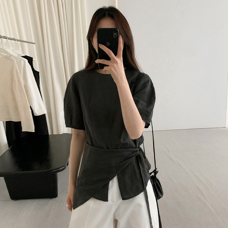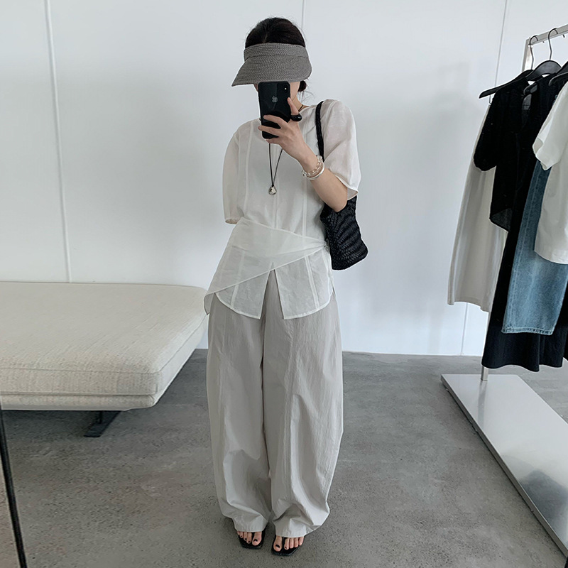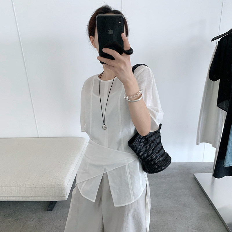 TG 小众设计感叠搭系带三角巾泡泡袖薄款衬衫女2025夏季新款
