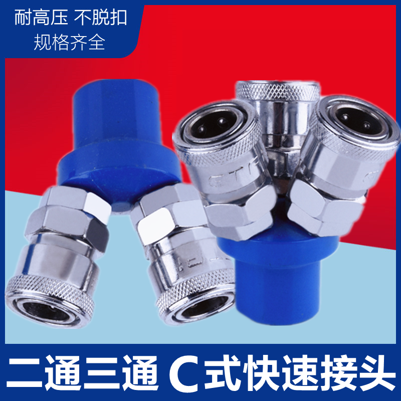 C式快速接头气动气管空压机接头SMY圆三通SMV圆二通 二叉三叉快插
