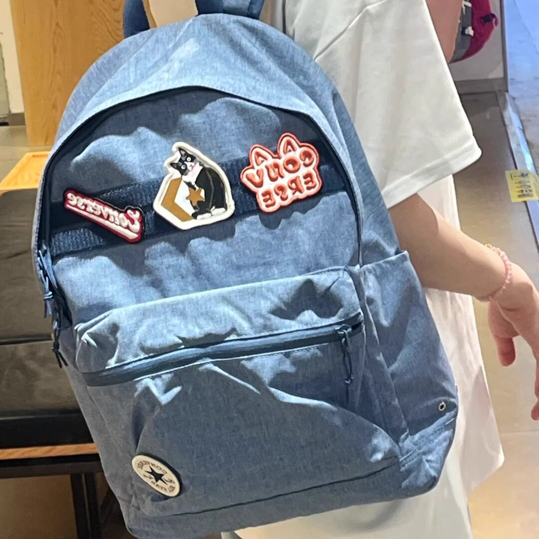 正品converse匡威 丹宁牛仔色贴布绣双肩背包书包 UA5750-UFL-023