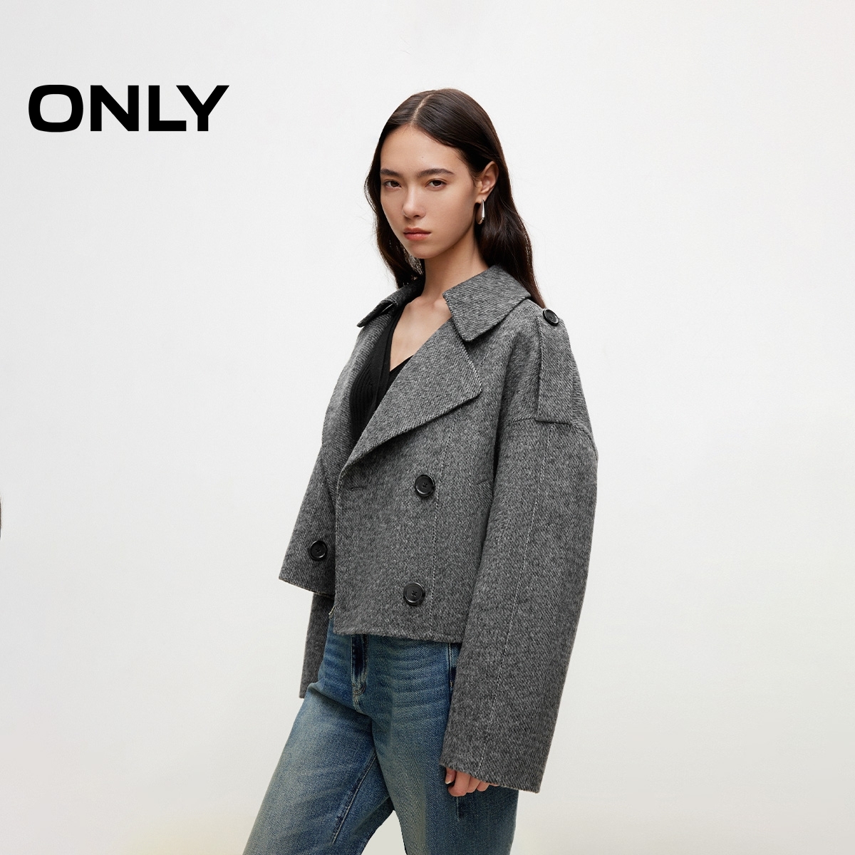 ONLY冬季格雷系含绵羊毛双面呢短款毛呢大衣女|12434T001
