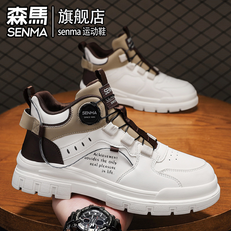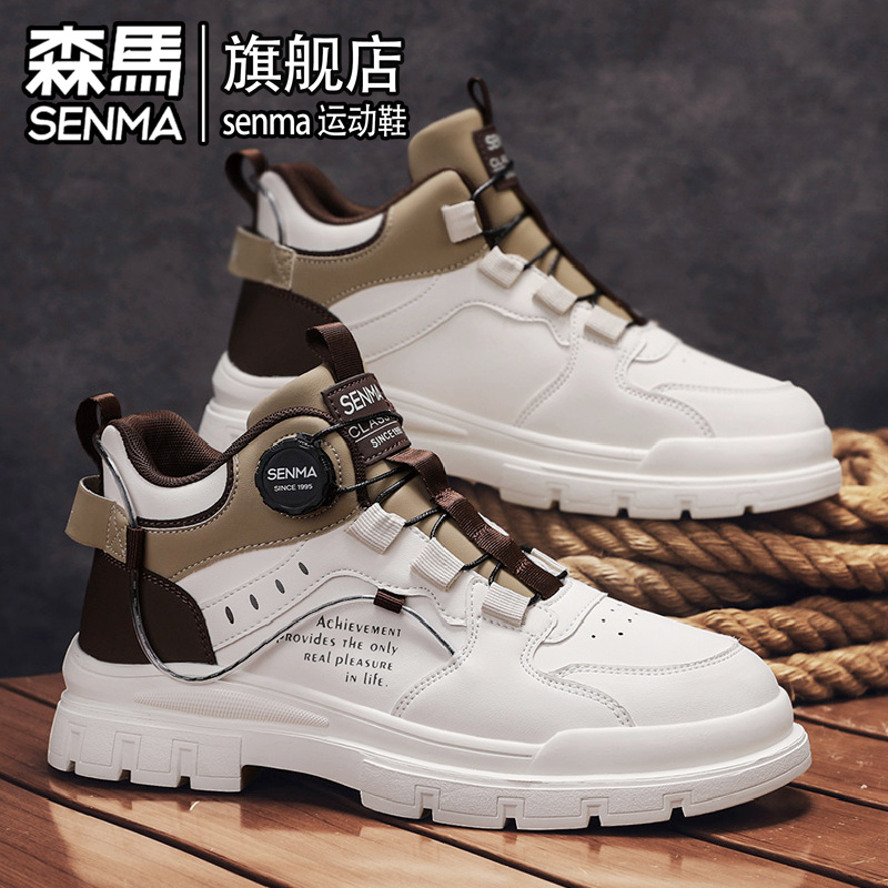森马高帮男鞋秋季运动休闲高级感中帮板鞋真皮防水防滑工装马丁靴