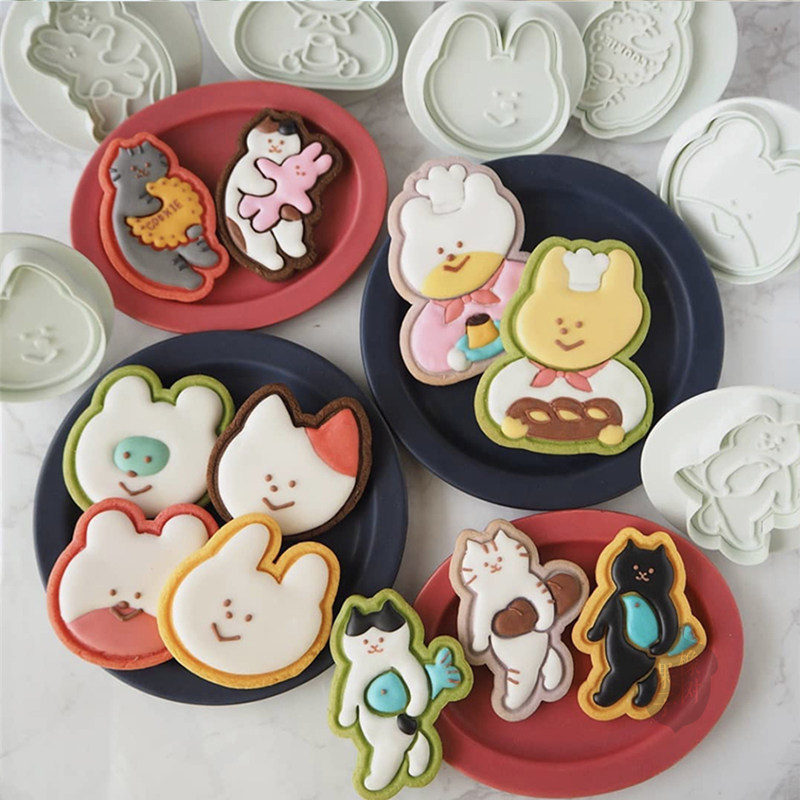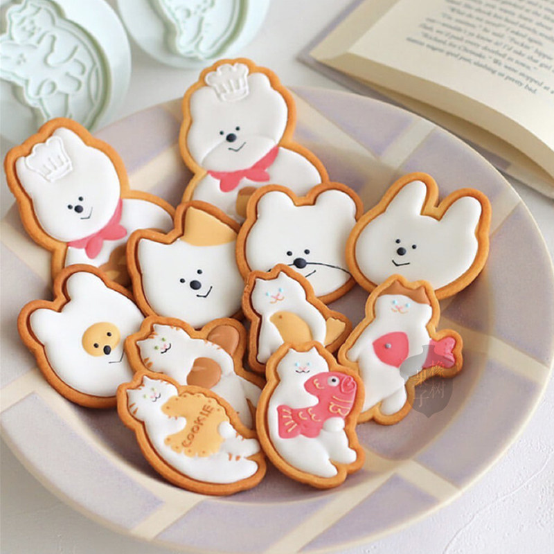 韩式卡通小猫咪萌版糖霜饼干模具 按压式亲子家用烘焙简单易上手