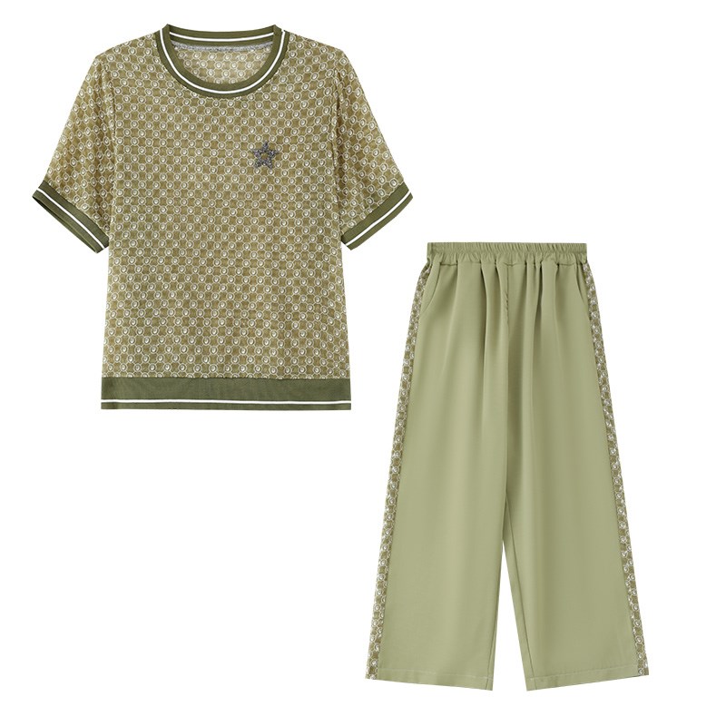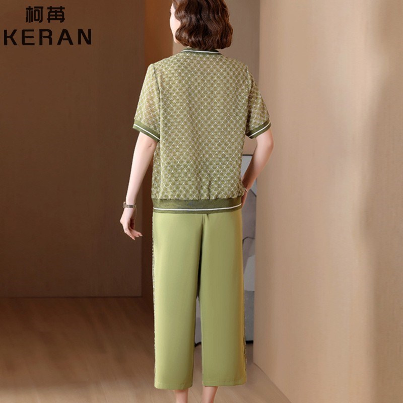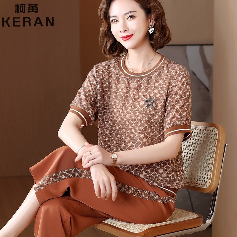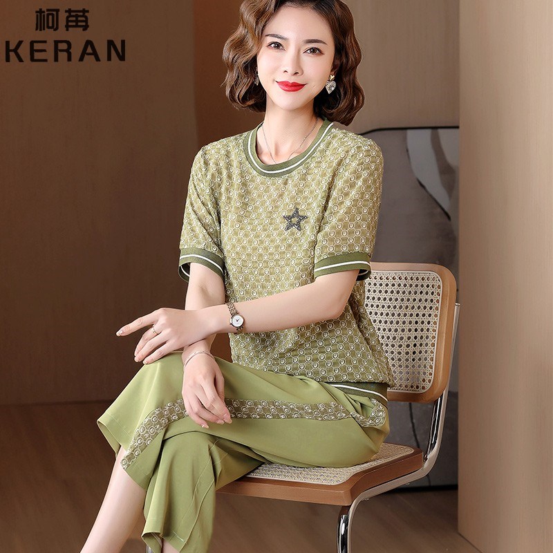 年轻妈妈夏装新款套装50岁中年女短袖T恤中老年休闲 运动两件套装