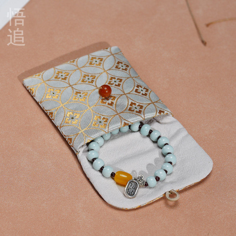 高档加厚首饰收纳布袋夹棉织锦缎翻口珠宝手镯包装袋文玩饰品布包