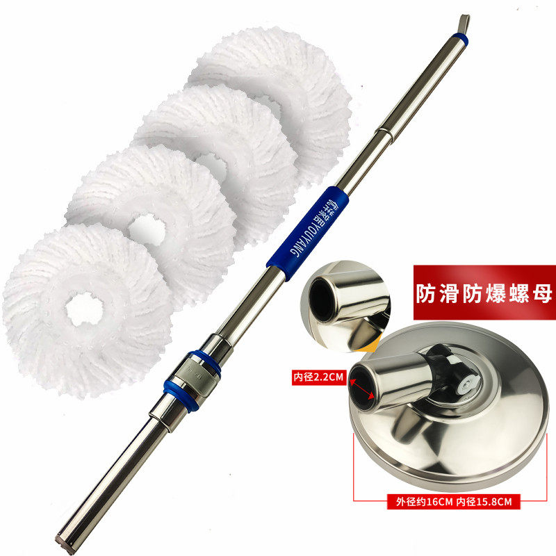 超长旋转拖把杆不锈钢通用一体式墩布替换配件拖头好神拖手压单杆