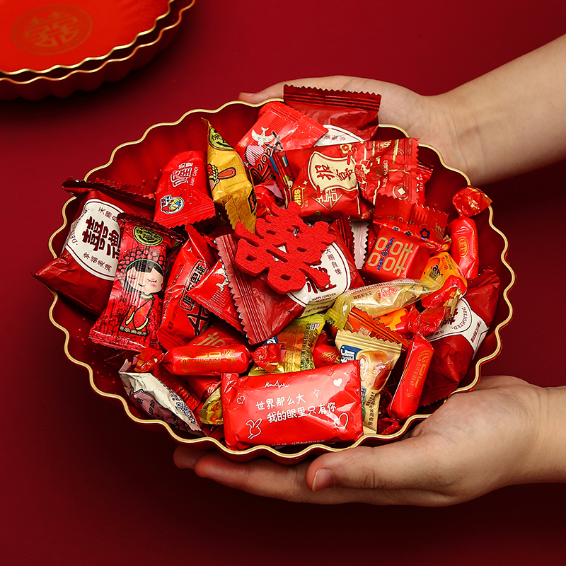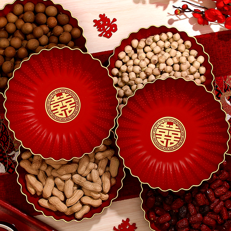 结婚果盘喜糖盘婚礼客厅茶几专用红色喜盘子订婚家用网红干果盘