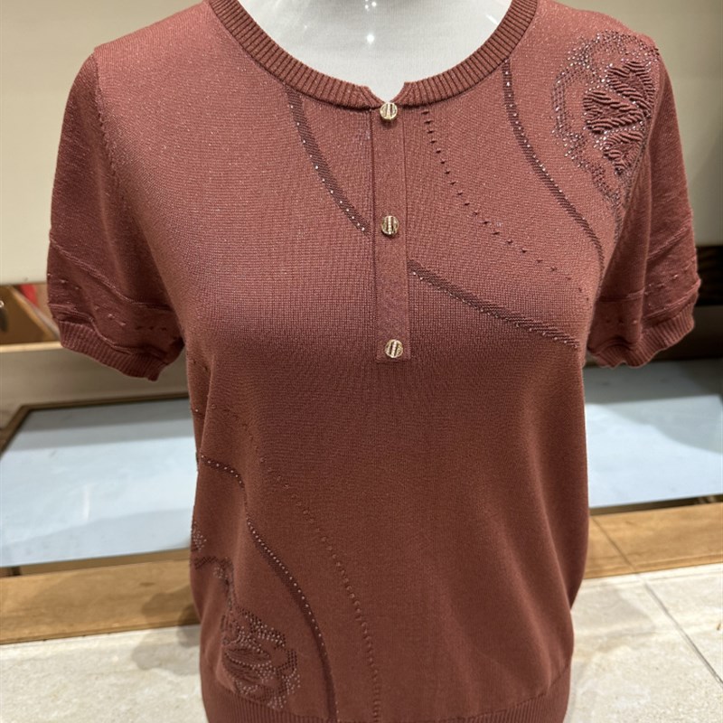 中年妈妈t恤长袖上衣望羽依卡璐豪港天丝针织衫中老年衬衫女打底
